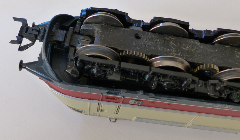So richtig zeitgemäß für moderne Wagen ist das nicht. Deshalb hat Märklin dann ja irgendwann mal die Drehgestellrahmen umgestaltet. Die Schürze war zu diesem Zeitpunkt nicht an der Lok.