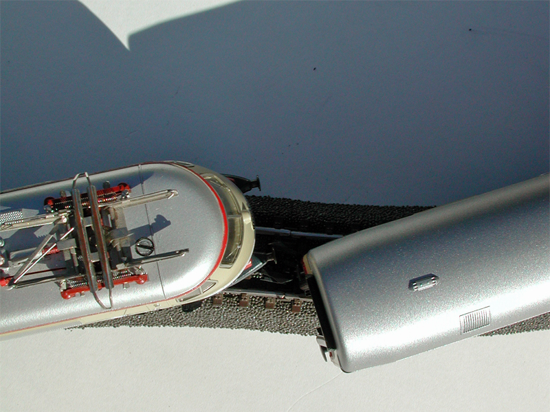 Die alten und die neuen Drehgestellblenden können gegeneinander getauscht werden. Nur passt der Adapter für den neuen Rahmen nicht durch den Freiraum in den Schürzen der alten E03 #3053 / 103 #3054. Nur bei Loks ohne Schürze ist daher ein Tausch einfach machbar.