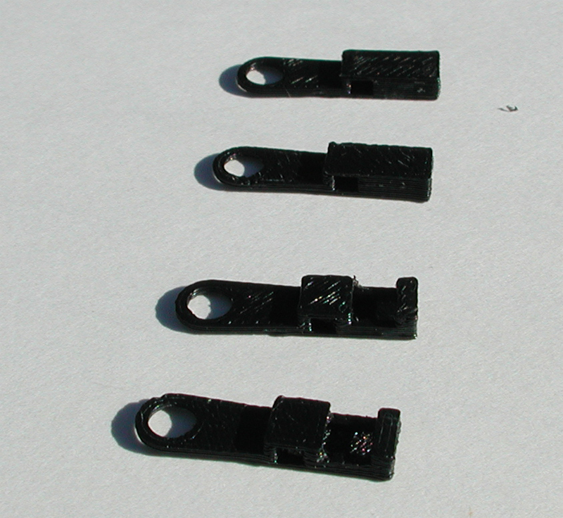 So sehen die zwei Versionen der Adapter für den alten Drehgestellrahem aus. Der Ausschnitt im vorderen Bereich des Adapters schafft den nötigen Freiraum für die vorhandene Schürze der Lok. Die hintere Version hat diesen Ausschnitt nicht und ist nur für Loks ohne Schürze mit altem Drehgestellrahmen geeignet.