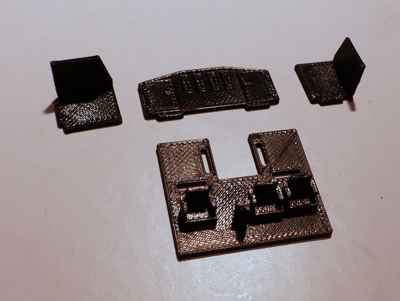 Um unter beiden A-Einheiten einen Schleifer zu montieren, hatte ich mir schon vor einiger Zeit im 3D-Druck entsprechende Halteplatten drucken lassen, bei der Gelegenheit sind dann auch schon die weiter unten kommenden Inneneinrichutungen für die A-Units entstanden.