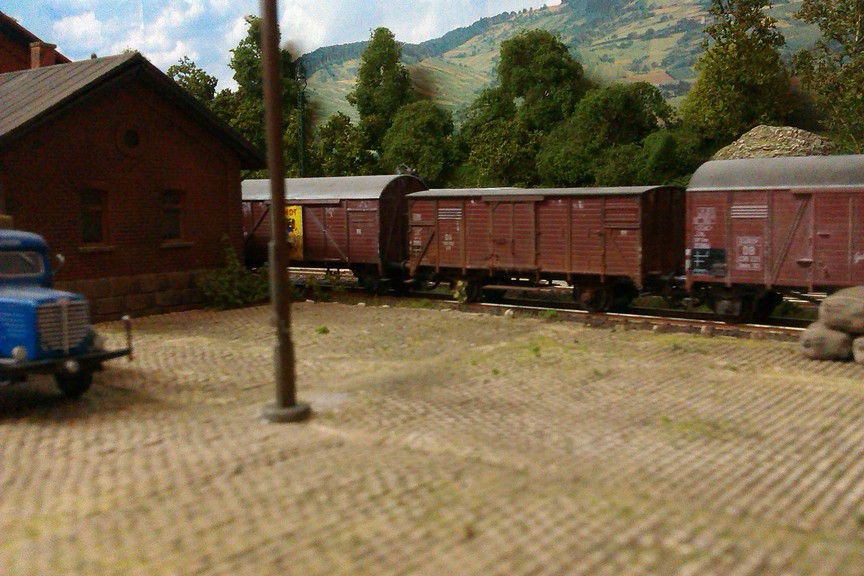 Hallo komme gerade vom Kohle fassen .Danke schön Peter ,Wolfgang und an alle die vergessen haben Könnte.Werde noch Bilder einstellen und Details. Und werde mir auch Eure Anlage anschauen. Habe schon mal bei Richard reingeschaut. Hut ab .... das ist wirklich meisterhaft und gefällt mir sehr gut. Interessant ist ,das jede Anlage auf Ihre weise schön ist ,aber alle verschieden sind. Ich denke es ist ähnlich wie beim malen.Ein guter Modellbauer ist warscheinlich auch ein uter Zeichner,vielleicht Maler.Was er schafft trägt seine eigene Handschrift. Micha , ich gieße alle Wnd und Mauerteile,Pflaster etc. mit Spörleformen.Ist der Gips gut trocken ,einmal nass machen (Schwamm). Alle Farben der Anlage (ausser Pflaster/Annelise Dekor ...oder so äh..) sind nur mit einem Pelikan Schulmalkasten entstanden.Für Mauern zunächst stark verdünntes schwarz auftragen so das ein neutrales Grau entsteht.dann den Grauton verändern wie gewünscht zb mit Umbra(geht sehr gut.Nach Trocknung alle Teile mit mattem Klarlack pinseln. Wiederum nach Trocknung können weiter Akzente wie Braun oder "Siff-grün" nachgelegt werden. Nur verdünnte Pelikan Wasserfarben. Gruß sagt ...Der Dampfer!