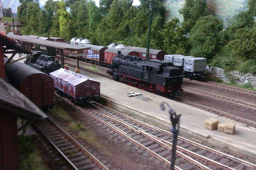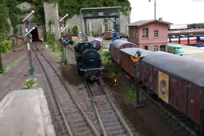 Hallo Kollegen Da der Niederrhein ( übrigens Eisenbahn und Modellbahn Sahelzone) an dem ich lebe, bekanntlich im alten Preußen liegt, hat sich meine Mutter denn wohl auch für Wilhelm entschieden. Alle nennen mich aber Willi....und das ist auch völlig ausreichend. So preußisch wie Wilhelm bin ich nu auch wieder nich. Zu meiner Bahn muß ich sagen; Pläne gibt es eigentlich keine. Es steht mir ein Raum von 4 x 4,50 zu Verfügung. Begonnen mit dem Bau habe ich so 2006. Es ist meine 5. Anlage. Es geht immer an der Wand entlang,mal schmaler mal breiter,rundherum,wobei eine Seite einen kleinen Fiddle Yard bildet.(will das noch ausbauen,evtl. Trainsafe?) Wie viele von Euch macht man im Laufe der Jahre eine kleine Entwicklung durch. Was geht,was nicht,was kann ich,was nicht. Ich habe mich für eine eingleisige Hauptstrecke irgendwo im Süden Deutschlands entschieden, vielleicht in der Nähe zu Frankreich (meine Mutter kommt aus Völklingen,weshalb ich diese Gegend sehr schätze).Epoche III ist aufgrund des gerade noch persönlich erlebten die ideale Zeit.Der Rest, genaue Streckenführung/Zahl der Gleise etc kam erst nach und nach zu Tage, ganz einfach durch puzzeln mit den Roco-Line Gleisen ohne Bettung,auf der fertigen Unterkonstruktion der Anlage.Werde mal was Aufmalen oder Übersichtsfotos einstellen.Angeregt durch lesen vieler Bücher und Hefte,Bildbände von Kosak bis Brandl usw. ( Ihr kennt sie ja auch alle), ist die farbliche Gestaltung ausgefallen.Vieles ist noch nicht fertig, wie ja auch auf den Bildern zu sehen ist.Überhaupt baue ich nur wenn ich "trieb dazu habe". Es kommt schon vor das ich ein halbes Jahr gar nix mache.Ohne Lust wird dat auch nix,wie der Niederrheiner sagt. So muß nun noch ein wenig arbeiten (LKW und Wochende passen halt nicht zusammen). Werde heute Nachmittag noch Bilder einstellen. Bis später und Gruß sagt Willi Dampfer.