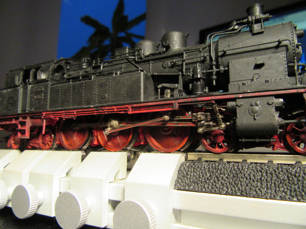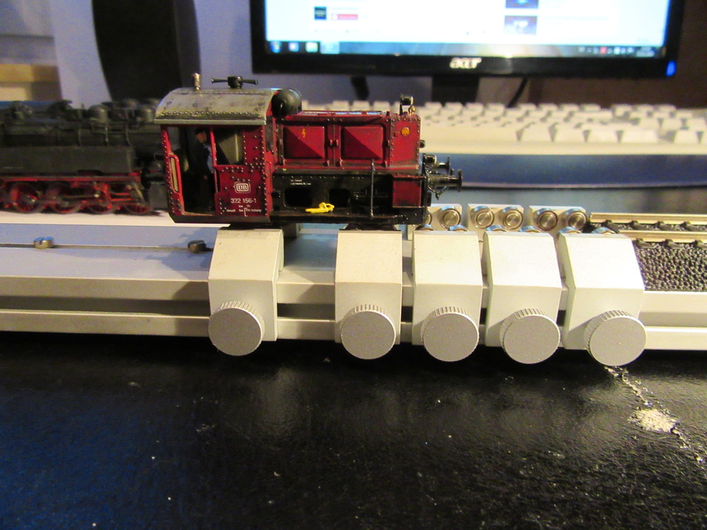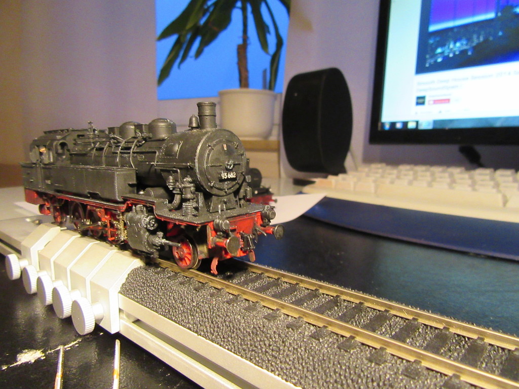 Da ich regelmäßig meine Loks mit zur „Inspektion“ mit an meinen AW Schreibtisch nehme (als NFZ Meister habe ich irgendwie einen Faible für Inspektionen....) war es dort immer etwas schwer mal eine Lok laufen zu lassen. Entweder über Kopf in der Lokliege was natürlich auch nicht der Hit ist oder auf einem Gleis,was wiederum keine längere Probefahrt erlaubt ohne ewig hin und her zu sägen.