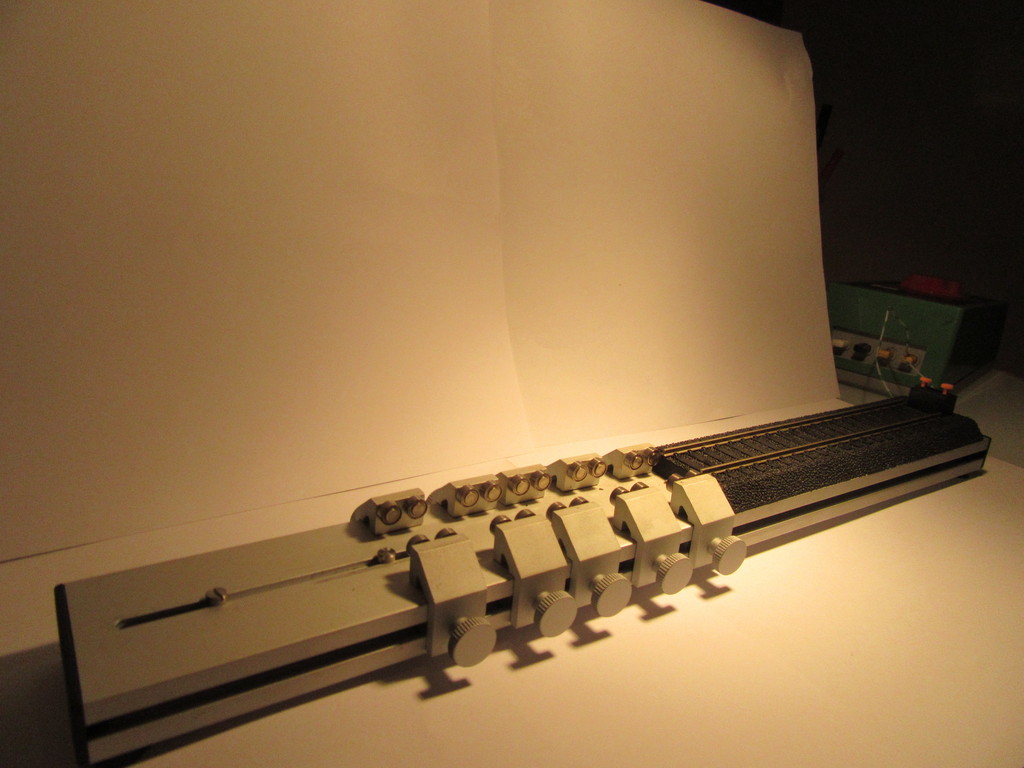 So ist mir auf der Börse in Kamp Lintfort ein Hornby Prüfstand ins Auge gefallen. Nachdem ich den Prüfstand vorsichtig aus dem Auge entfernt und ihn mir einmal angeschaut hatte, kam plötzlich dieser Urkraftgedanke „Haben wollen „in mir auf....Nach kurzem wirtschaftlichen Gefecht mit dem Händler,wurden wir uns einig und der Prüfstand ging für kleines Geld mit mir nach Hause.