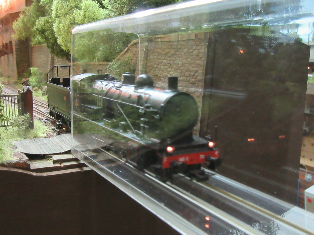 Die Lok bei Einfahrt in den „Trainsafetunnel“
