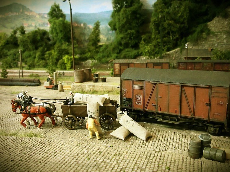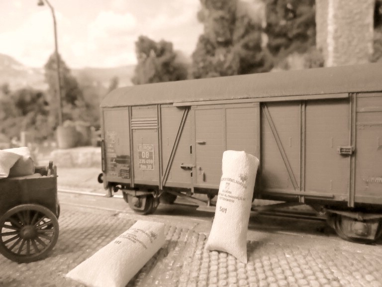 da melde ich mich doch auch gleich. Die Verladeszene ist Dir hervorragend gelungen, bin ich froh, dass ich nicht die schweren Säcke herumhieven muss. Deine Güterwagenalterung gefällt mir sehr gut, vielen Dank für die schöne Bebilderung.