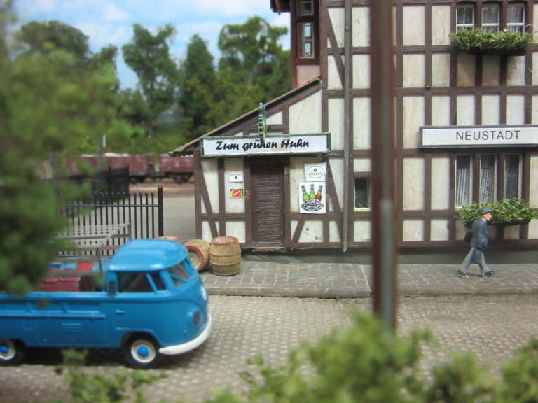 Moin Willi, der Bahnhof ist ja endlich fortgeschritten und auch sehr hübsch geworden. Damit die "Lindenthaler Saufziegen" sich da aber wirklich wohl fühlen, muss sich schon noch einiges tun - vor allem der Biergarten muss nun schleunigst bestückt werden und 3 Fässer Bier, jo sog amal, 3 Fässer, da steigt ja kein Lindenthaler gar nie nicht aus dem Zug aus dafür! Da muss wohl eine neu Güterzugverbindung nach Neustadt aufgenommen werden damit das grüne Huhn überlebt!