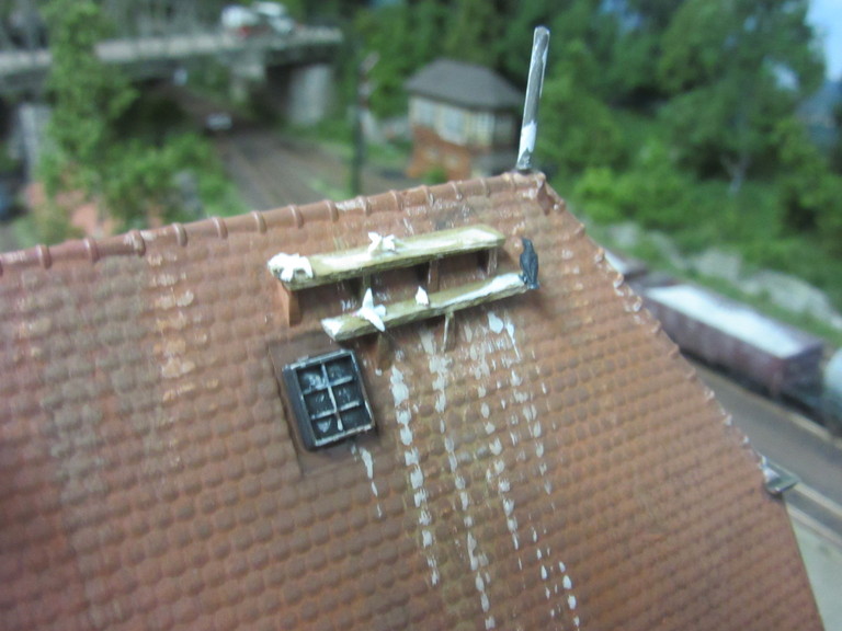 An der Giebelstange des Hauses kannst du mit etwas Sekundenkleber an der äußersten Flügelspitze eine Taube anbringen die im Landeanflug ist. Ich habe das in der Klamm mit einem Reiher gemacht.