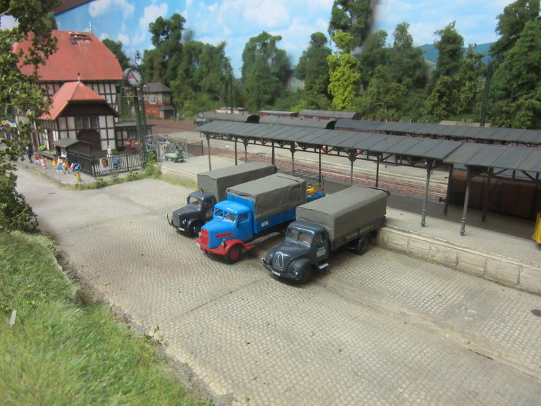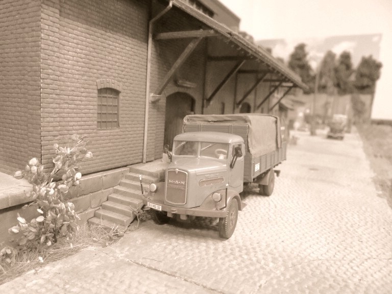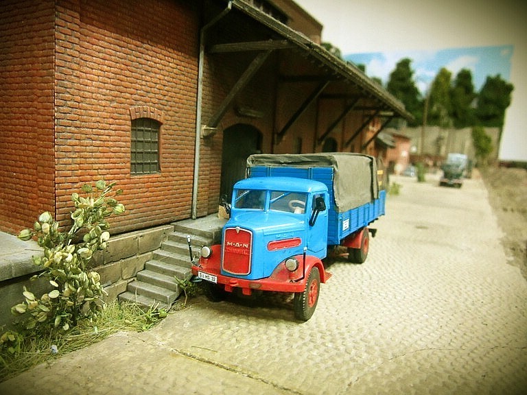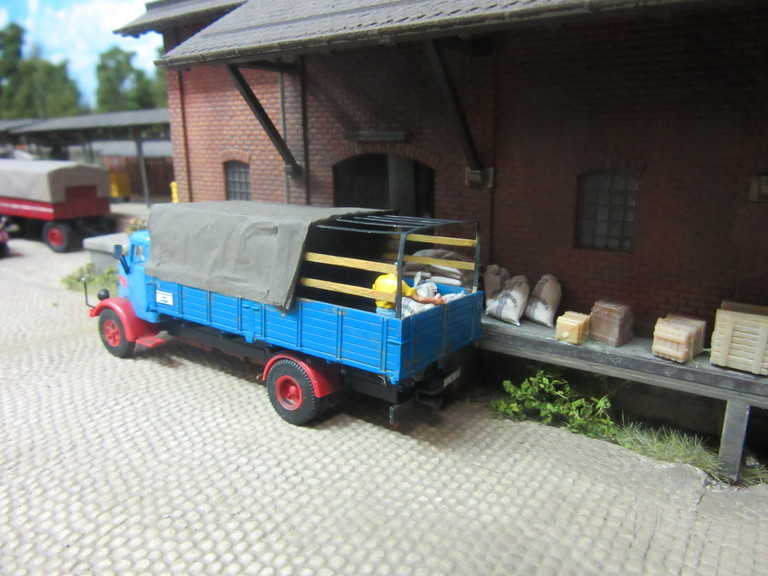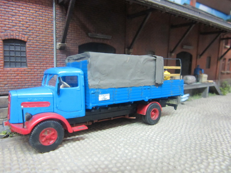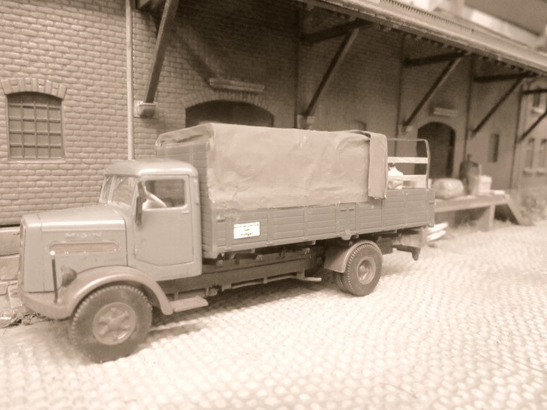 Da als nächstes wie schon erwähnt die Güterabfertigung "fertiggebaut" werden soll, bin ich dabei Material in der Bucht zu fischen. Wandlampen,Beleuchtungskörper und Bahnsteigteile für den Ladebahnsteig sind bereits im Netz. In meinen Abendstunden habe ich versucht den ein oder anderen LKW mit offener Plane für die Ladeszenen am Stückgutbahnsteig zu bauen. Ein Magirus und ein MAN sind schon entstanden. Guckst Du hier: