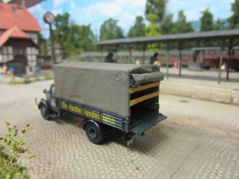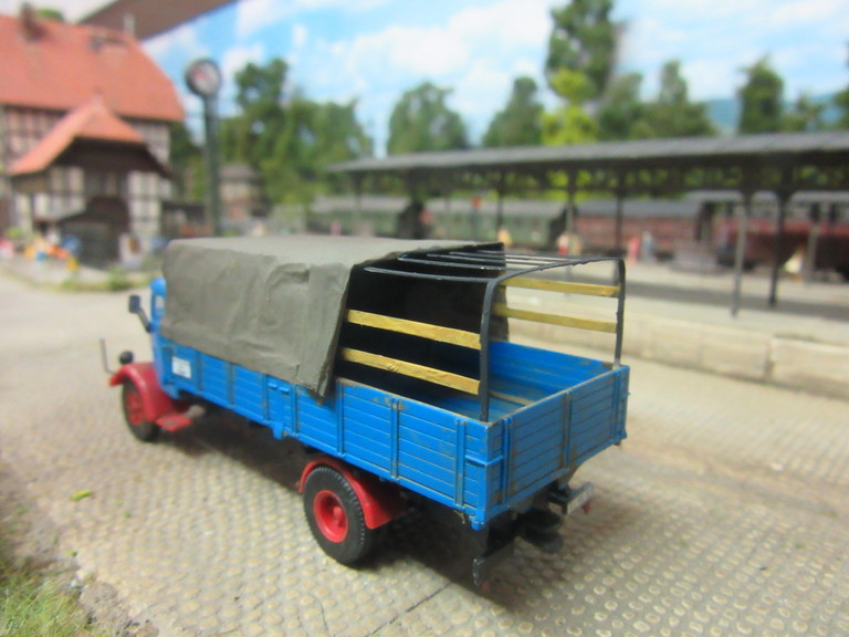 das Auto ist ein Kit-Bashing Kind aus Herpa,Brekina und Weinert Teilen......ach ja und aus "Butterbrotss...Papier" für die Plane.