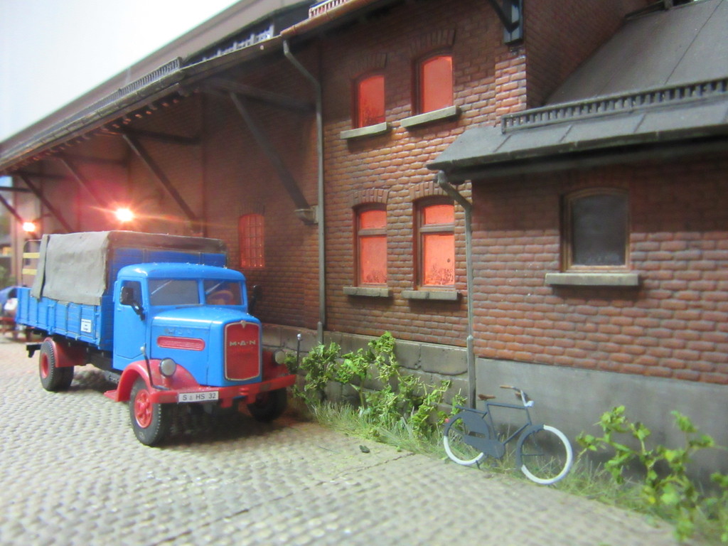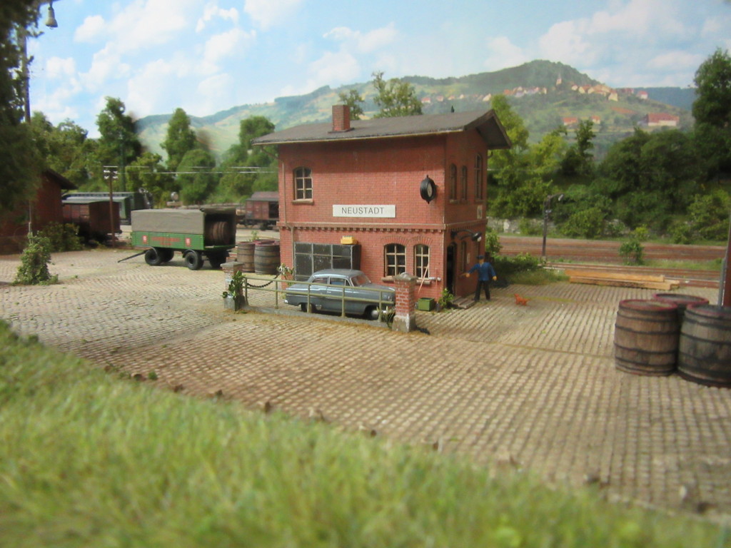Das mit den 60er Jahren war so gemeint, das ich mich mit der dargestellten Zeit in Neustadt in den 1950er Jahren aufhalte und aufhalten möchte. Der Schwerpunkt soll ganz klar bei den alten FZGen liegen und die modernen Geräte sind bestenfalls so gerade im Kommen. Deshalb wird es hier auch keine neuen Brawa Schiebewandwagen geben ,weil die klar in die 1960er gehören. Hin und wieder erlaube ich mir im Rahmen der „Einsteinschen Zeitverzerrung“