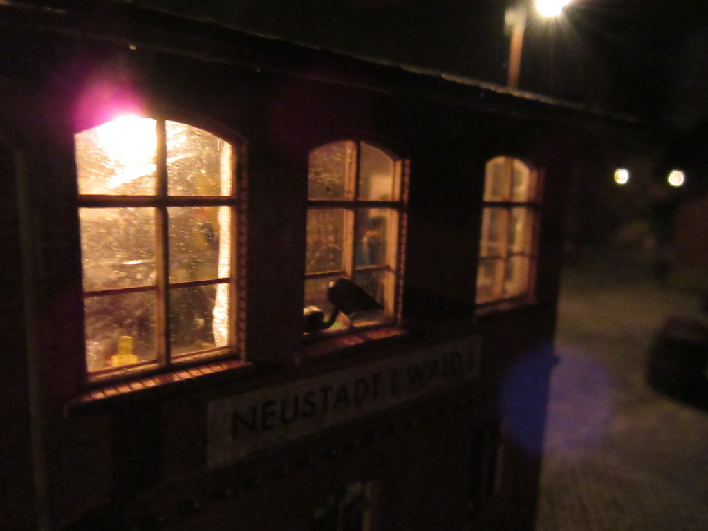 Danke das es Dir gefällt . Die Umsetzung der Sperre ohne Weinert Drehmechanik ist jedenfalls für mich eine Gewinn an Nervenkraft............ Hat sich bis jetzt gut bewährt und die Laterne ist ebenfalls inzwischen gesetzt und beleuchtet worden. Habe da die Weinert Bauteile genommen und den Stelldraht einfach mit dem Möbelriegel verbunden. Die Drahtlänge ein wenig eingestellt und schon dreht die Laterne ihre 90 Grad. Beleuchtung rein fertig. Jetzt fehlt noch der Handumstellhebel,den die Sperren sollen ortsgestellt sein.