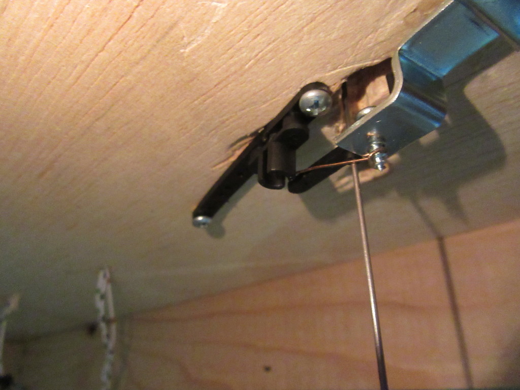 Die Laterne wurde gesetzt. Dazu benutzte ich die Halterung aus dem Weinertsatz . Der Stelldraht wurde mit dem Möbelriegel verbunden und etwas eingestellt ,um die 90 Grad Drehung zu gewährleisten. Anschließend wurde noch die Beleuchtung installiert.