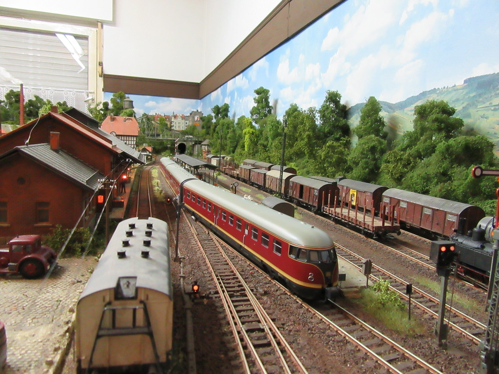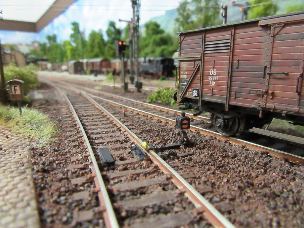Uiihhh,bei soviel Lob werde ich ja schon rot.....dankeschön werter Stummifreund. Das mit den Gedanken zu Eingriffen in bestehende Szenen ist völlig richtig. Da besteht eine große Gefahr , das man etwas versaut, was vorher gar nicht übel war. Doch wenn man einmal auf einen Fehler hingewiesen wurde durch die Stummikollegen und man hat das dann auch erkannt und kapiert, ist da schon ein gewisser „Leidensdruck“ der einen antreibt die Sache zu verbessern. So geht man dann doch wieder ran an die Sache. Ausserdem hat das noch einen Vorteil. Viele Tätigkeiten ,wie z. B. schottern, macht man eine gewisse Zeit lang und dann nie mehr. Man verlernt das Wissen um diese Dinge. Muß ich jedoch immer mal wieder ran und nachschottern, behalte ich die Fähigkeiten um diese Tätigkeit und die Farbgebung etc. Ist schon ok so !!