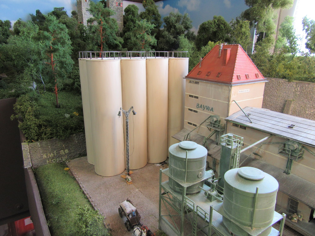 mit den Grüntupfern der kleinen Silos......