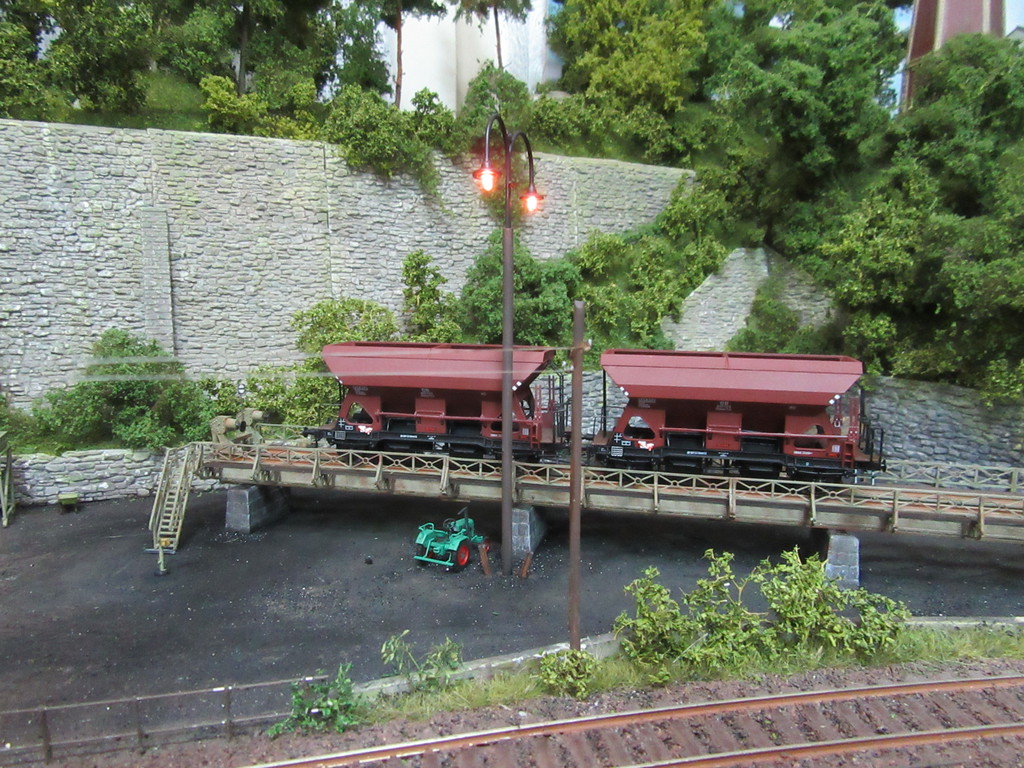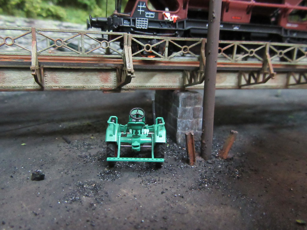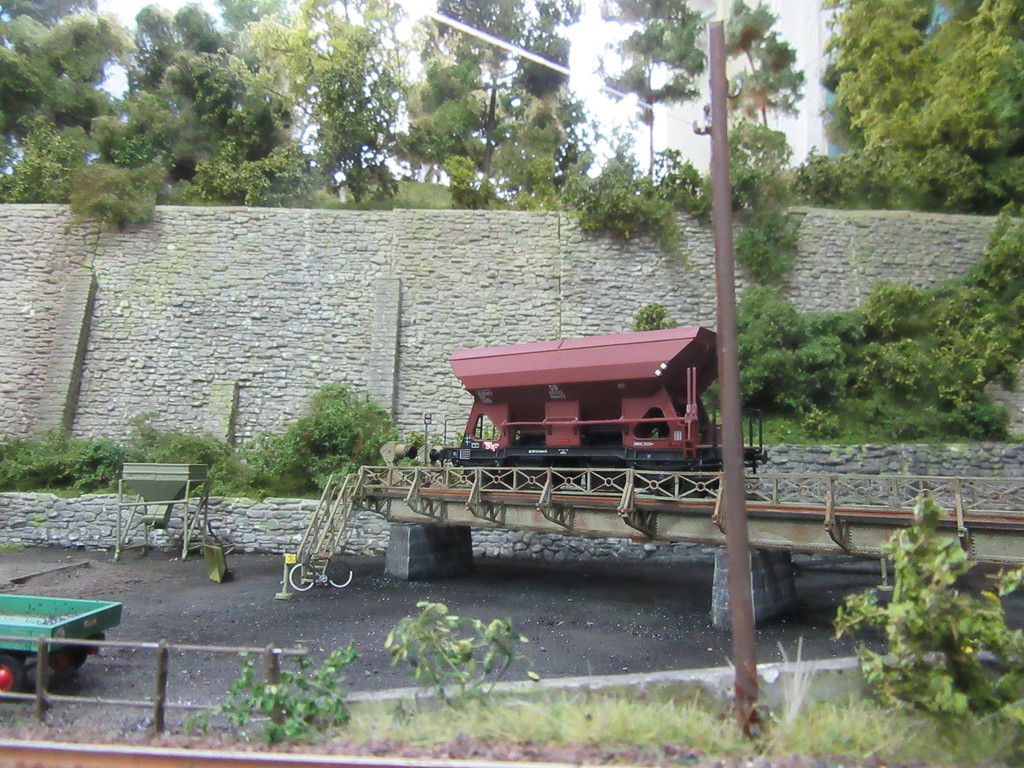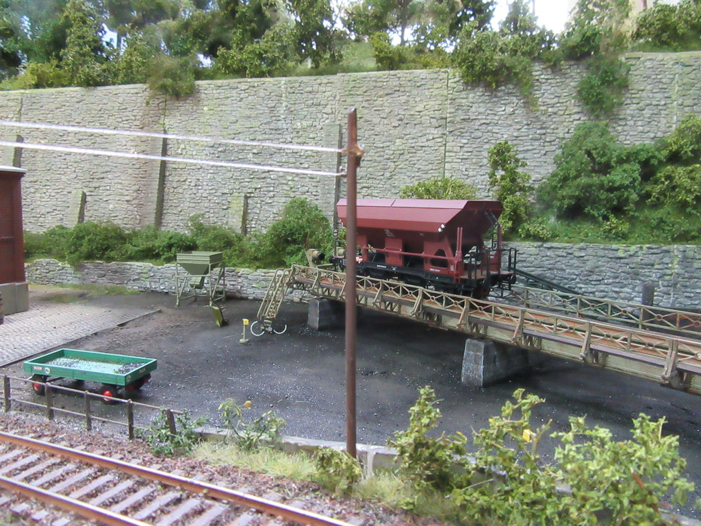 deine Entladeanlage gefällt mir immer mehr. Ich glaube auch bei dir hat sich da so ein Bastelstau gelöst...und jetzt geht es mit Riesenschritten wieder voran auf der Anlage. Die gezeigten Bilder machen Lust auf mehr. Hast du zur Ausgestaltung mal an die Feldbahnatrappen von Auhagen nachgedacht? So ein paar Gleise und Weichen, auf denen deine Arbeiter die Loren mittels Muskelschmalz aus den hintersten Ecken nach vorne zu Verladung bringen, müssten da doch noch Platz finden...