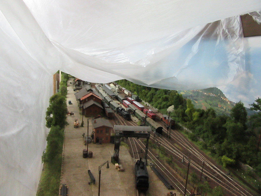 Die Plane ist tatsächlich ein guter Staubschutz,wenn man nicht so doof iund beim Abnehmen der Folie nicht genügend vorsichtig ist. Ich war anscheinend zu doof und habe einen Teil der Krümel nach dem Streichvorgang auf die Anlage befördert beim Abnehmen…… :x naja saugen mußte ich ja sowieso……. ! Freue mich das Du hier warst werter Freund
