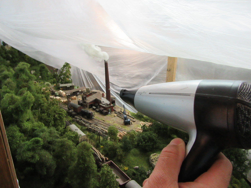 Hallo Erich werter Stummifreund Ja die Christos sind hier gestern kurz rumgegeistert. Allerdings meinte der „Meister“ dann auch ich hätte besser blickdichtes Material zum Verhüllen nehmen sollen,wie von ihm bevorzugt. Ich entgegnete ihm das schließlich unter der Folie noch Leute leben,wenn auch kleine… und das man denen die Sonne nicht ganz wegnehmen könne.Dafür hatte vor allem seine Frau Verständnis…. Das Sägewerk weigert sich beharrlich die Dampfmaschine abzustellen….man habe Aufträge aus dem Ausland …etc. etc.. Mal sehen wie ich das noch hinbekomme ............ Wie das mit der Trainsafe Geschichte werden soll,darüber bin ich selber gespannt …wir werden es erleben….natürlich gemeinsam !!!! Beste Grüße sagt Dir Willi