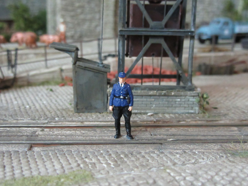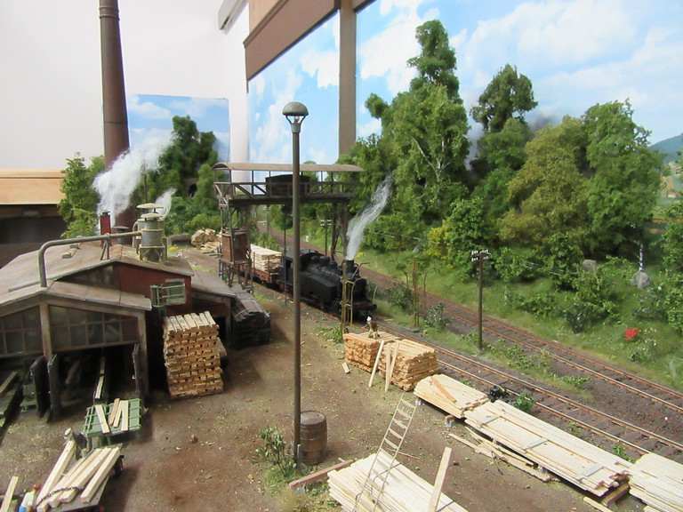 wow das Sägewerk ist mal richtig toll! Wir haben im Dorf noch eins, immer noch aktiv, wahrscheinlich aber nicht mehr allzu lange, da der Besitzer auch schon älter ist. Auch heute noch steht da ein alter Fuchsbagger. Die Atmosphäre, die dort herrscht, abgesehen davon das es natürlich kein Dampfsägewerk ist, sondern ein normales hast Du aber absolut getroffen. Der Lagerplatz ist echt genial. Ein alter Unimog mit einem entsprechenden Rungenanhänger wäre da eventuell noch passend. Der Anhänger könnte z.B. ein alter Wehrmachtsanhänger gewesen sein, die Bracken entfernt und nur Stahlrohre als Rungen durch den Sägewerksbesitzer anmontiert. Beim Fuchsbagger würde sich auch besser ein Rohrausleger, statt ein Gittermast machen, denn da kannste besser den Holzstamm seitlich am Ausleger anlegen, die Gefahr das der Gittermast durch unsanftes Anlagen abknicken könnte war da nicht so groß. Außerdem sieht man die Rohrausleger leider zu selten im Modell. Beides aber nur Ideen am Rande.
