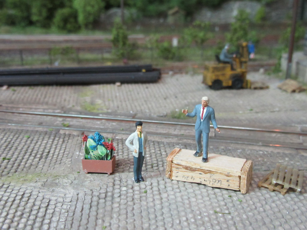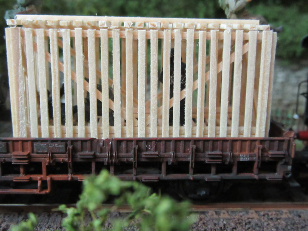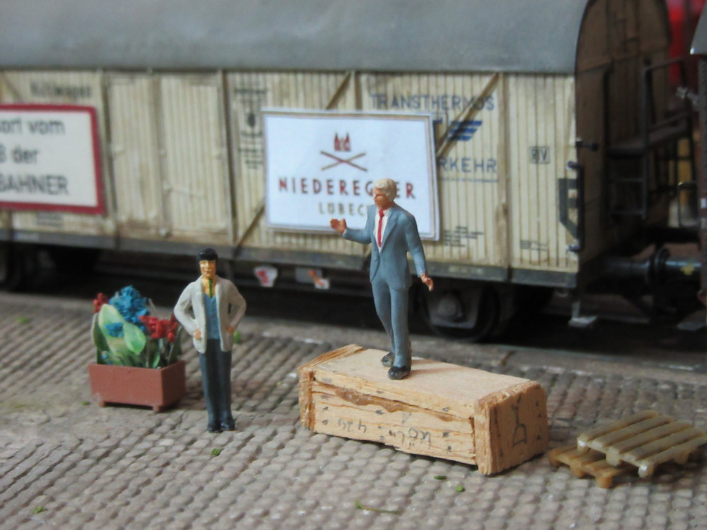 Der Zug ist derweil auf Gleis 1 eingefahren und läßt dort den seltsamen Käfigwagen stehen.