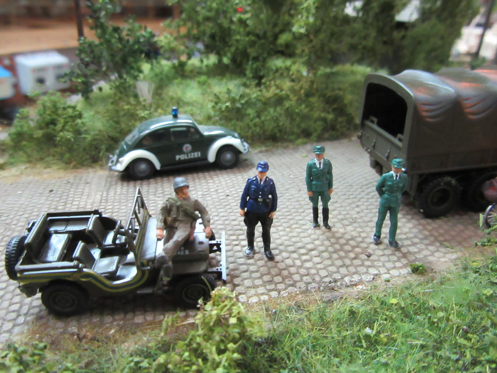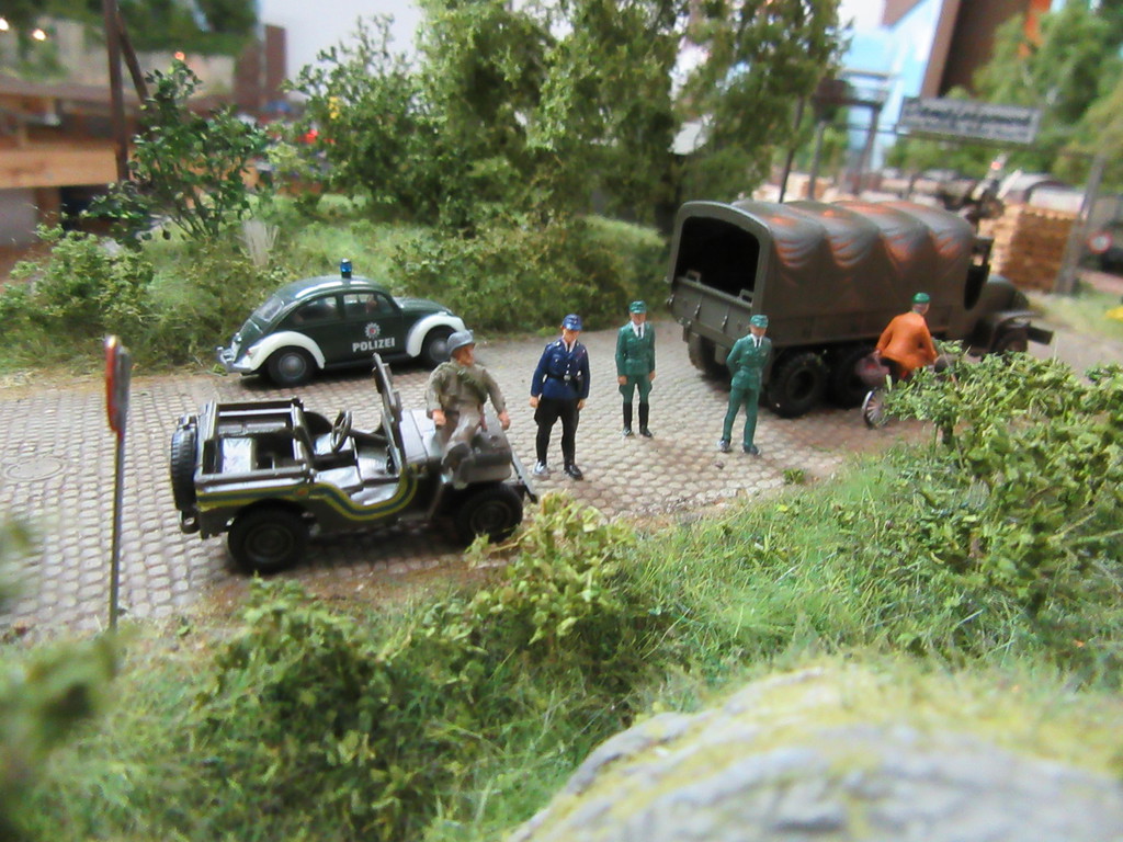 GMC´s und ein Jeep sind vorgefahren und natürlich auch die örtlichen Schupos Heinz Engelbrecht und Klaus Maas mit ihrem Rennkäfer.