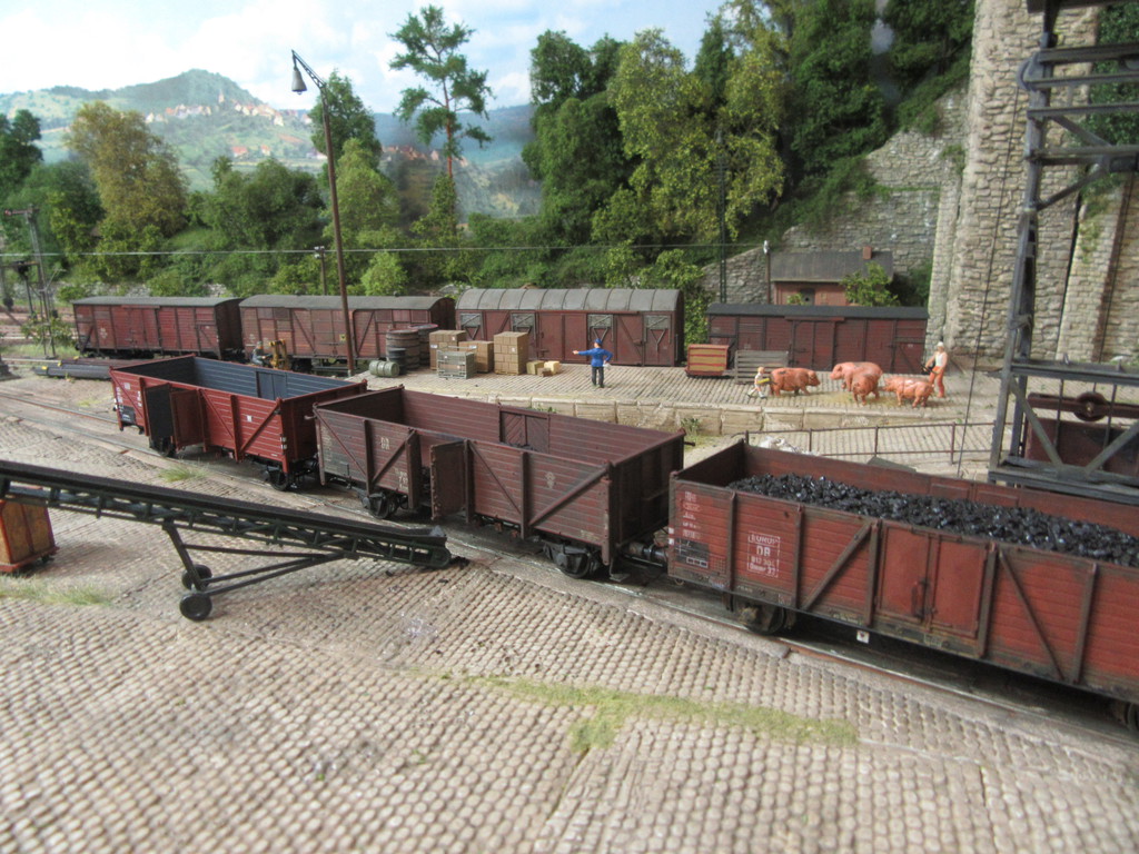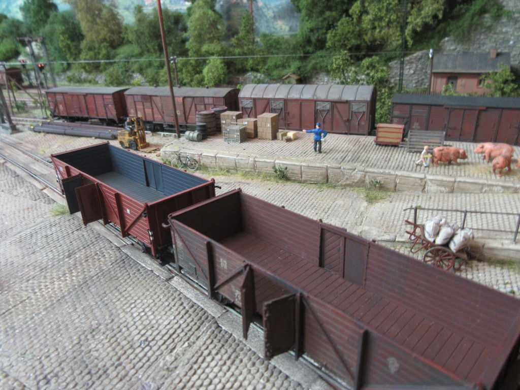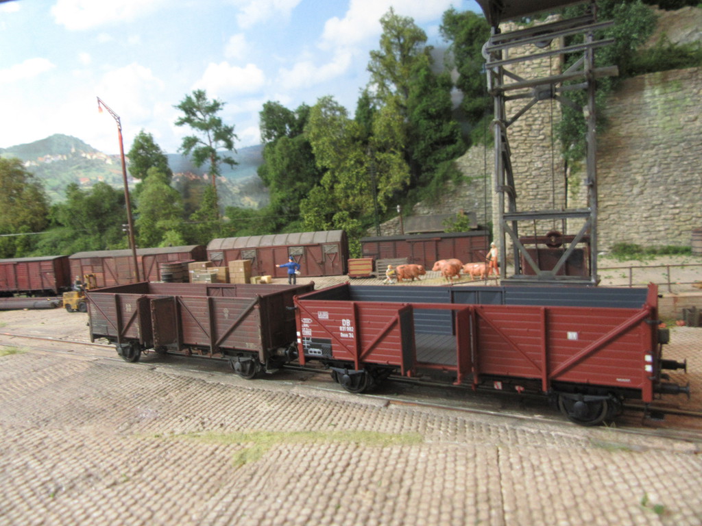 Wie auch immer,die Wagen aus dem Set kommen sauber und perfekt montiert daher. Nichts ist krumm oder lose. Die Wagen haben ein manierliches Gewicht,laufen gut,sind klasse detailliert (Federpuffer) und weisen sehr feine und dünne Bordwände auf. Die Türen sind an beiden Seiten zu öffnen. Die Klauennachbildung des Türmechanismußes unten dient gleichzeitig zum sicheren festen Schließen der Türen während der Fahrt.