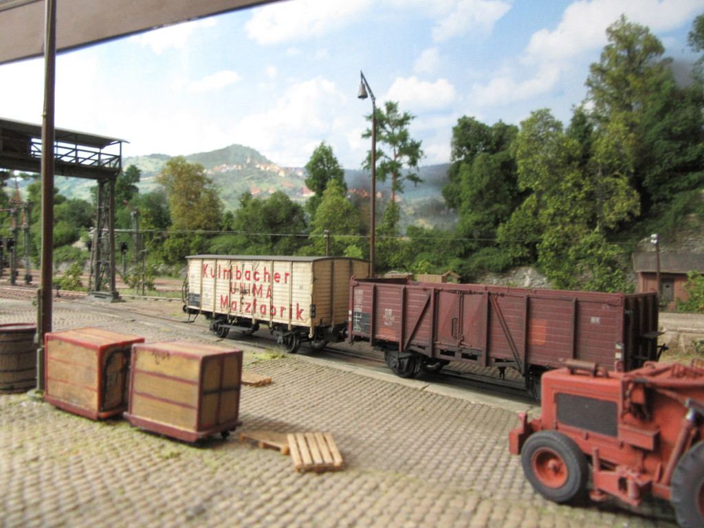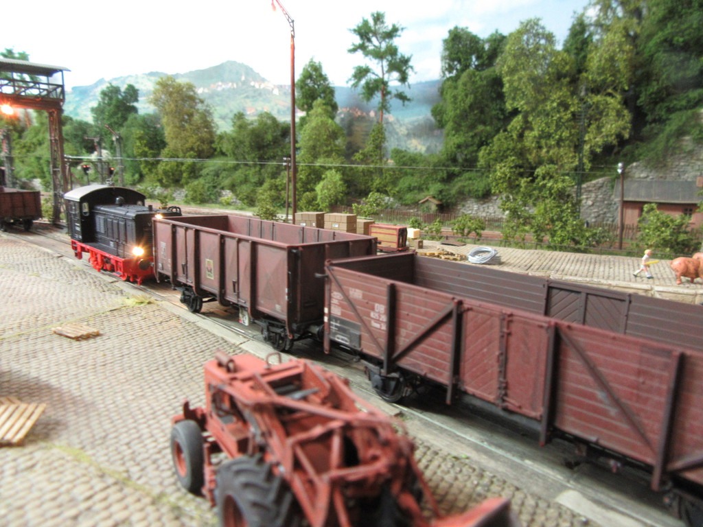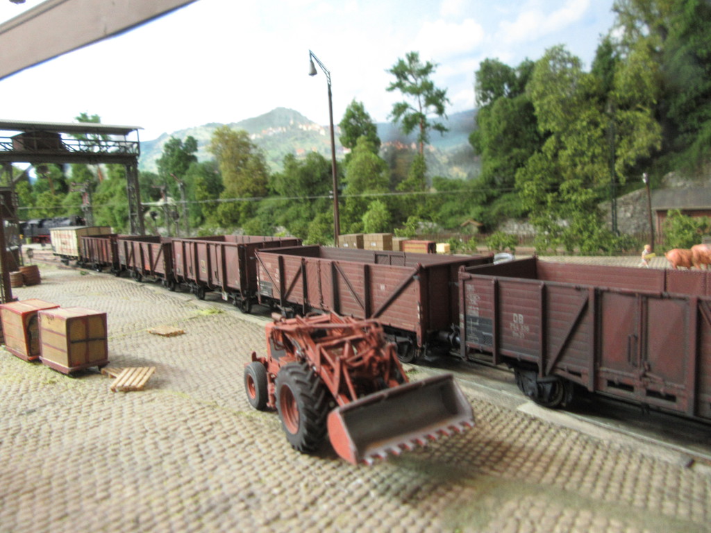 Daß Du zum Entspannen immer paar Waggons "einsaust" gut - das gibt der ganzen Anlage mehr Flair! Sieht man gut im Kontrast zu den schachtelfrischen neuen Lokomotiven. Tja und mit dem Grenzgebiet hast Du's gut, da kannste auch etwas flexibler beim Fuhrpark sein...