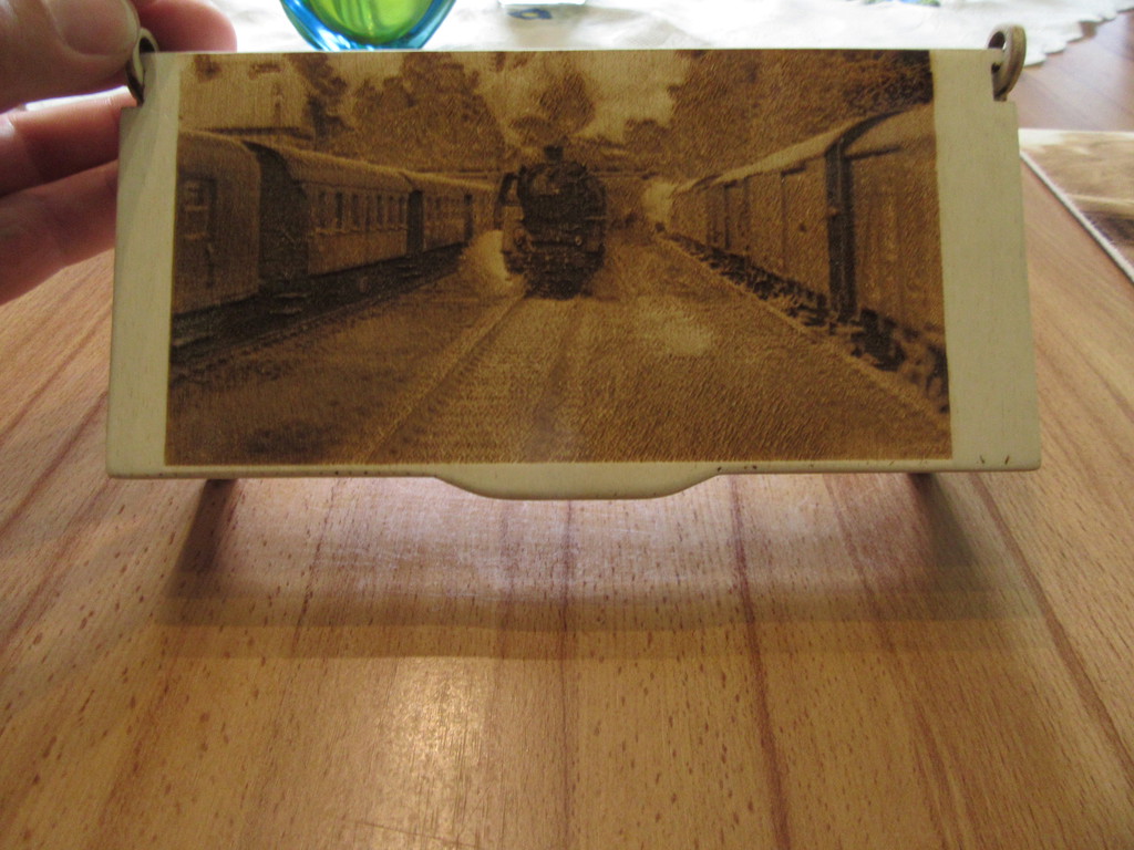 Ein Arbeitskollege hatte mir noch ein wunderschönes Geburtstagsgeschenk gemacht,welches wirklich außergewöhnlich und es wert ist hier gezeigt zu werden. Ihr könnt Euch sicher noch an die Geschichte mit dem fliegenden Fischzug und der 41er erinnern. Die damals gezeigten Fotos hat mein Kollege genutzt um mittels eines Lasergravierers eine Version der Neustadt durchfahrenden 41er auf Balsaholz zu gravieren. So entstand ein Din A4 Bild und eine kleine Bastelkiste mit der Lok.
