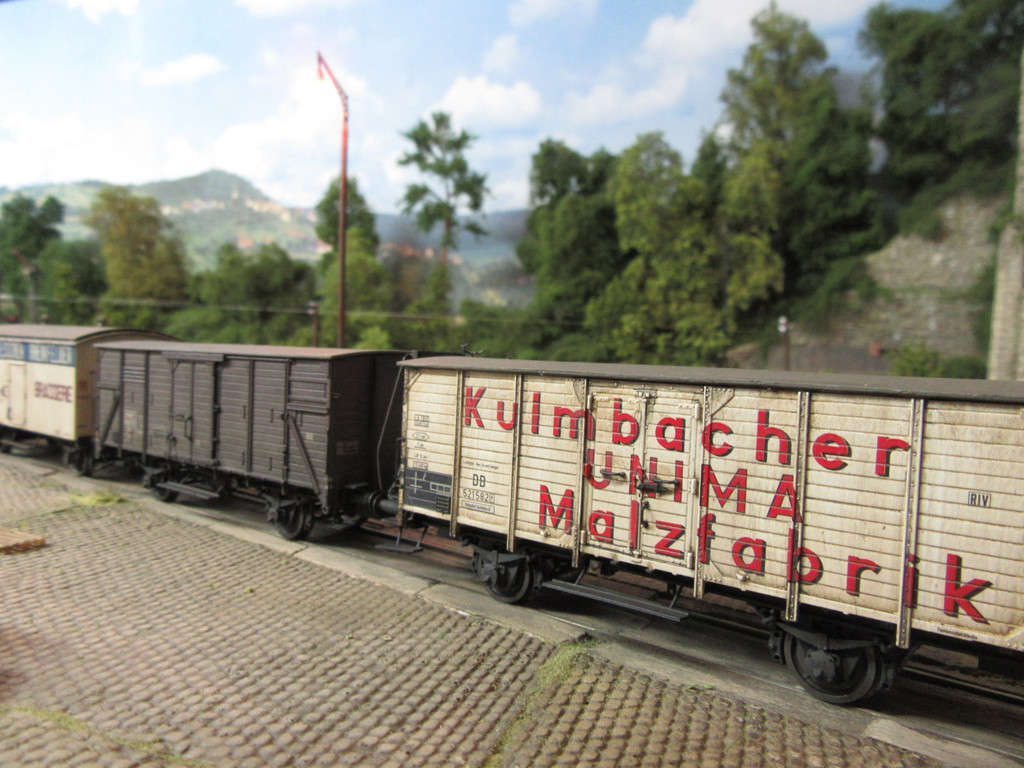 Doch seht selber. Ich habe die mit Airbrush und Farbkasten bearbeiteten Waggons und die neuen Loks nach meiner Rückkehr An der bekannten GBF Fotostelle auf meine Plattenkamera gebannt .Hier kammen auch die neuen "weathering Stifte"