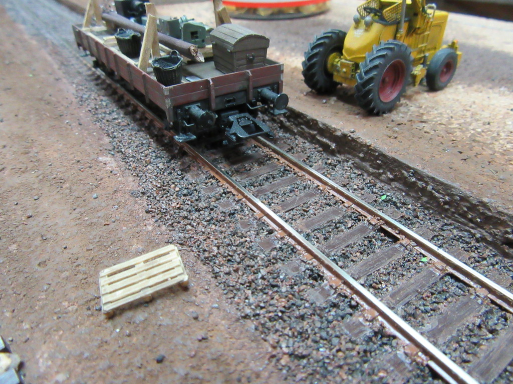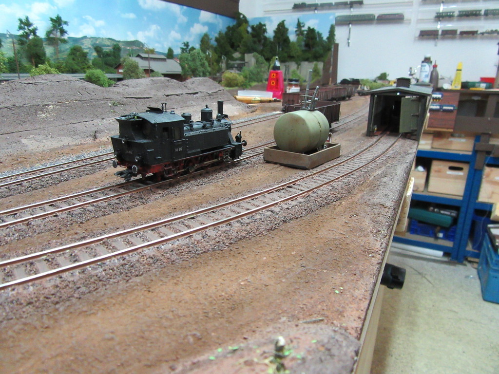 Hallo Lutz und vielen Dank für Deine Gedanken zur Betankung. Im Prinzip hast du völlig Recht. Die Betankung würde einen wassersicheren Bereich erfordern. Das ist jedoch der Stand der Dinge in unserer Zeit, unserer Tage also. Neustadt am Wald spielt aber in den 1950er Jahren. Damals hatte man keinerlei Gedanken an Umweltschutz oder dergleichen Dinge. Du hast die Antwort ja eigentlich schon selber gegeben. Ich habe eigentlich vor an dem Platz ,an dem die KÖF üblicherweise betankt und /oder abgeschmiert und mit Öl befüllt wird ,einen etwas dunkleren Fleck zwischen die Gleise aufzubringen. Erst in den 1980 Jahren habe ich persönlich beobachtet das man begonnen hat um wassergefährdende Bereiche Auffang- und Schutzwannengebilde zu errichten. Ich habe auch darüber nachgedacht die Schutzmauer um den Tank zu entfernen. So was ist eigentlich auch mehr Stand von heute. Allerdings kenne ich auch mindestens drei Öllager und Tankbereiche wo bereits Ende der 1950er Jahre bei deren Erbau Mauern als Auslaufschutz gebaut wurden. Ich werde mir beim Ausgestalten und Detaillieren Gedanken dazu machen. Beste Grüße und gerne bis später sagt Willi