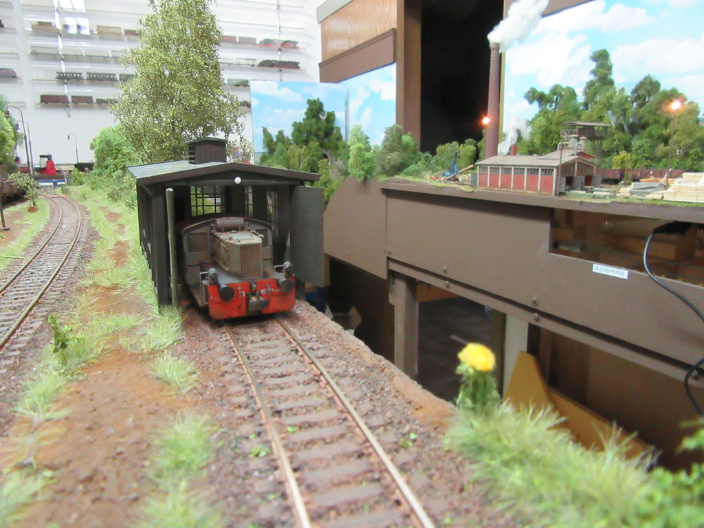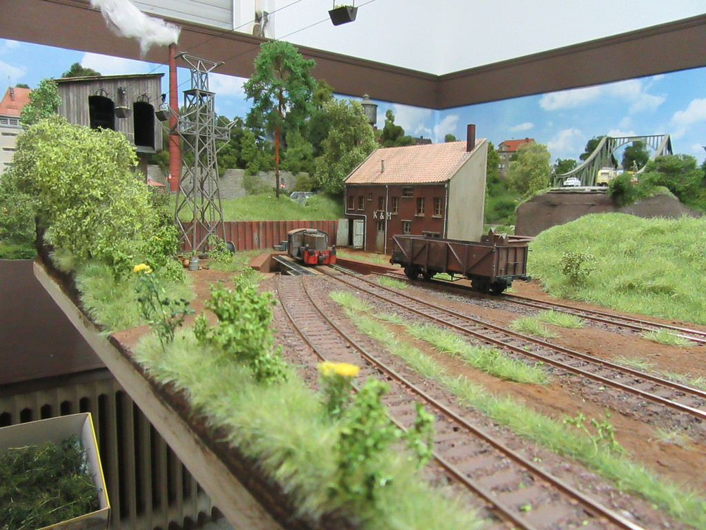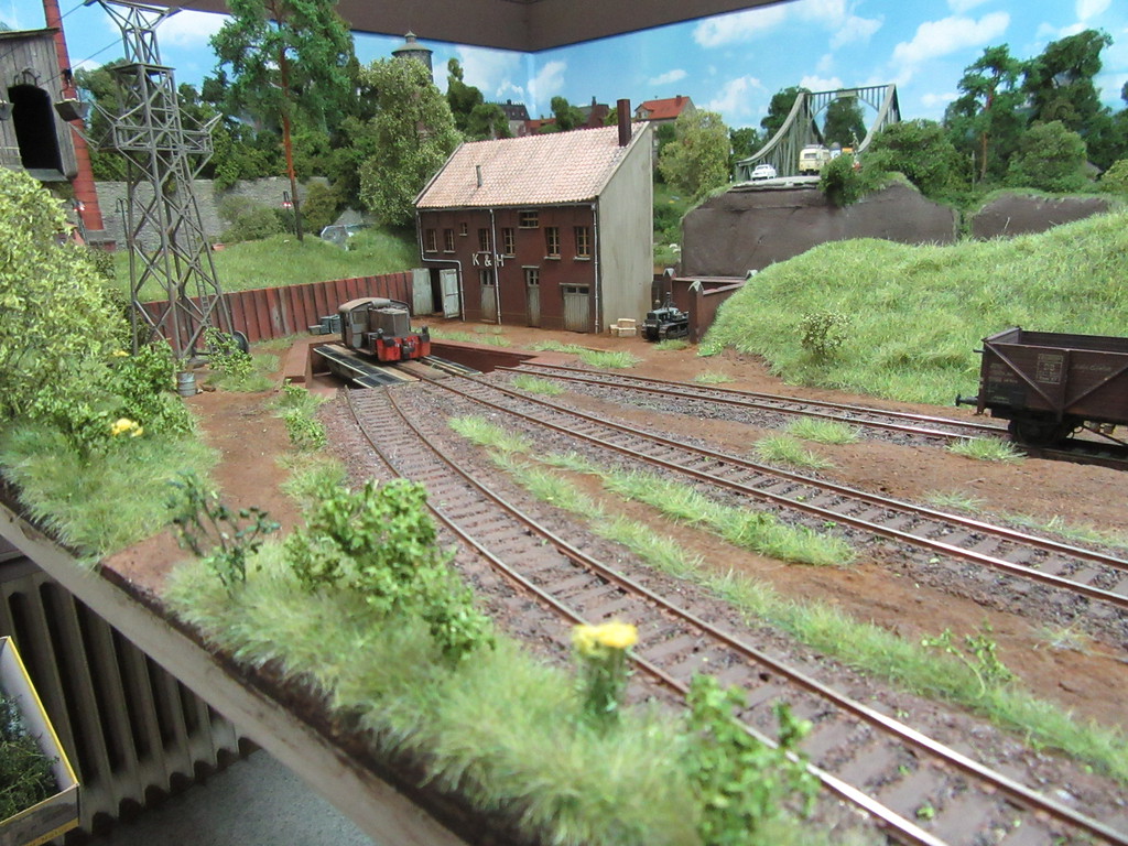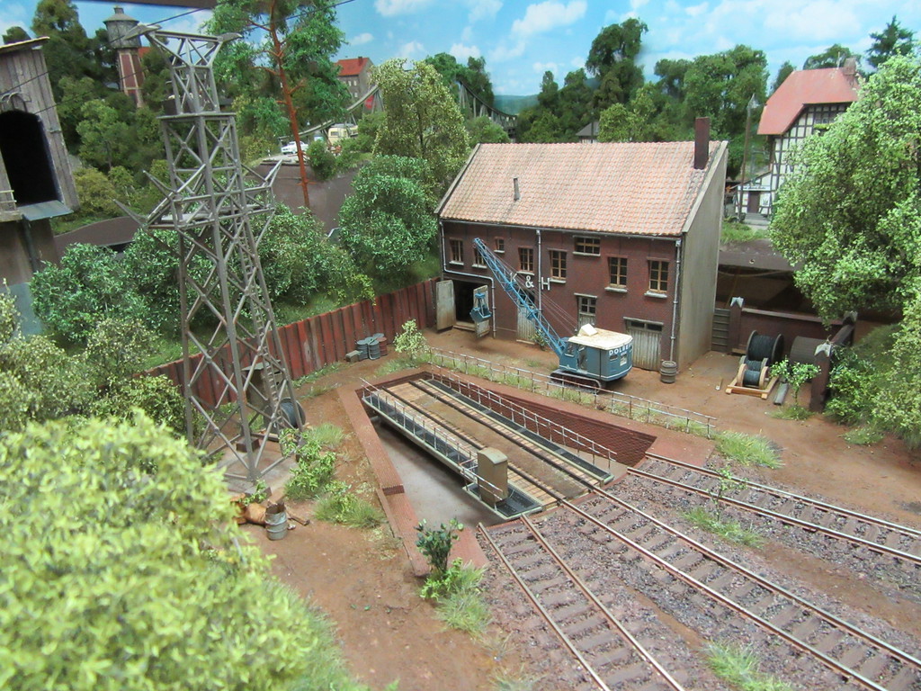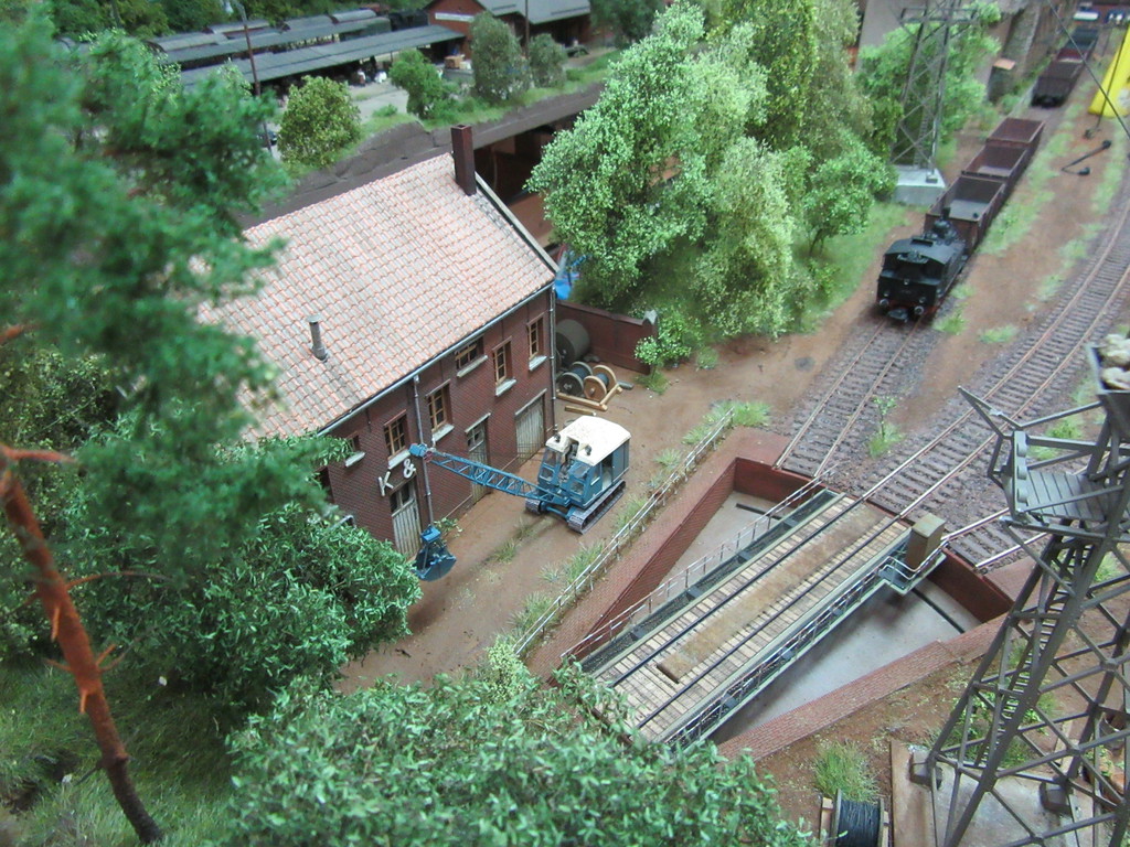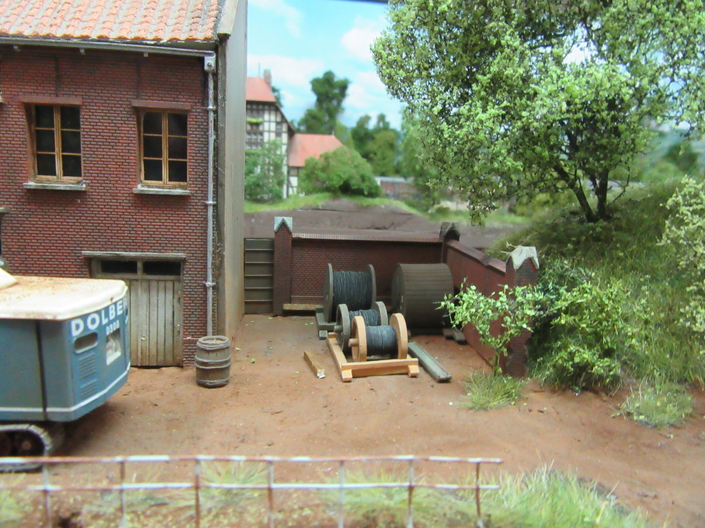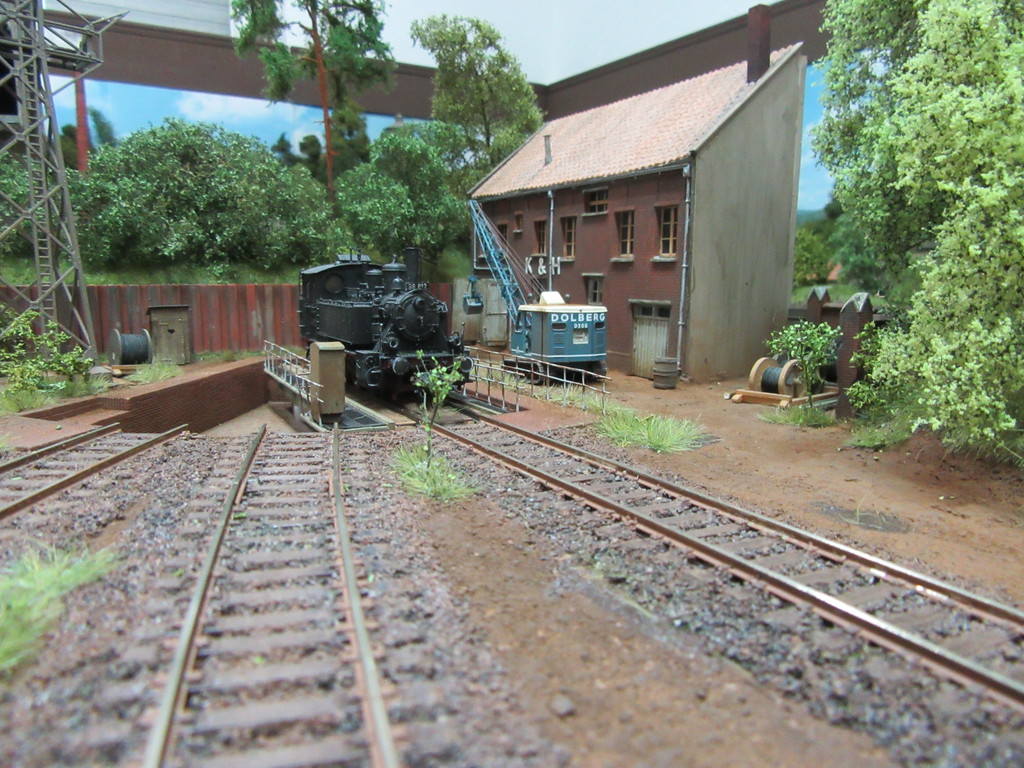 Einziger Wehrmutstropfen: Mir wird nicht klar, wie der Bagger oder andere Fahrzeuge zur Werkstatt kommen. Der Streifen neben dem Gleis, das auch an der Schotter Verladung vorbeiführt, sieht recht schmal aus. Oder täuscht das?