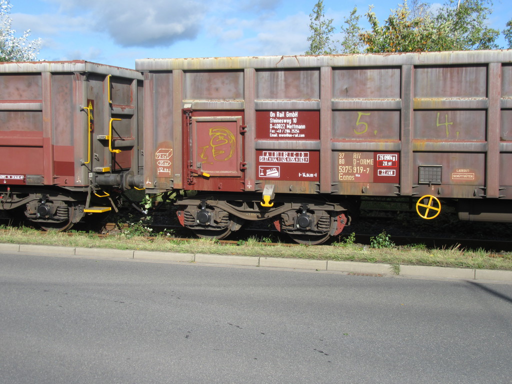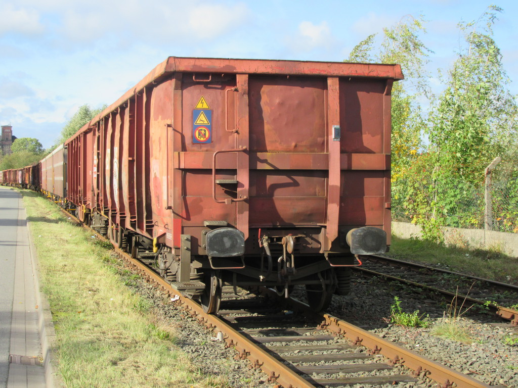 Vor dem Zaun stand eine beachtliche Schlange an EAOS Wagen und wartete auf Beladung mit Schrott