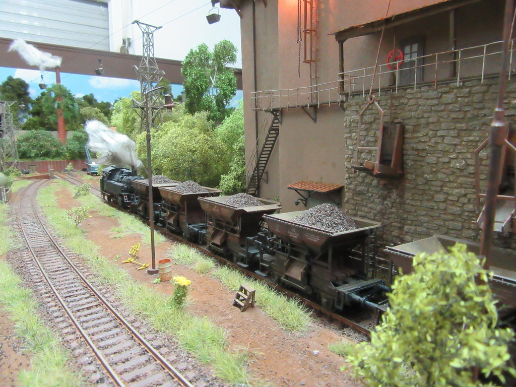 [...]ich möchte gerne das Schotterwerk mit Zugstangen vom Anlagenrand betätigen um die Wagen zu beladen,aber so weit bin ich noch nicht,schreibe mir nur meine Ideen immer auf oder schaue bei dir nach.