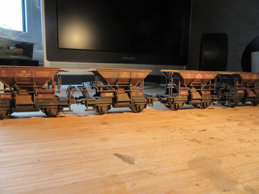 Nun bin ich nach langer Zeit bei dir durch das Wurmloch angekommen..................................und ich muss dir sagen,das was ich sehe ist ja wohl vom allerfeinsten(muss wohl daran liegen das wir Niederrheiner sind)der Beitrag mit den Talbot Schotterwagen ist für mich das aller beste überhaupt, was ich gelesen habe,die Alterung vom Anfang bis Ende werde ich so 1zu1 übernehmen,weil meine Schotterwagen sind einfach zu neu(ich habe die von Fleischmann bis jetzt sind es 15 Stück und bin immer noch auf der Suche).