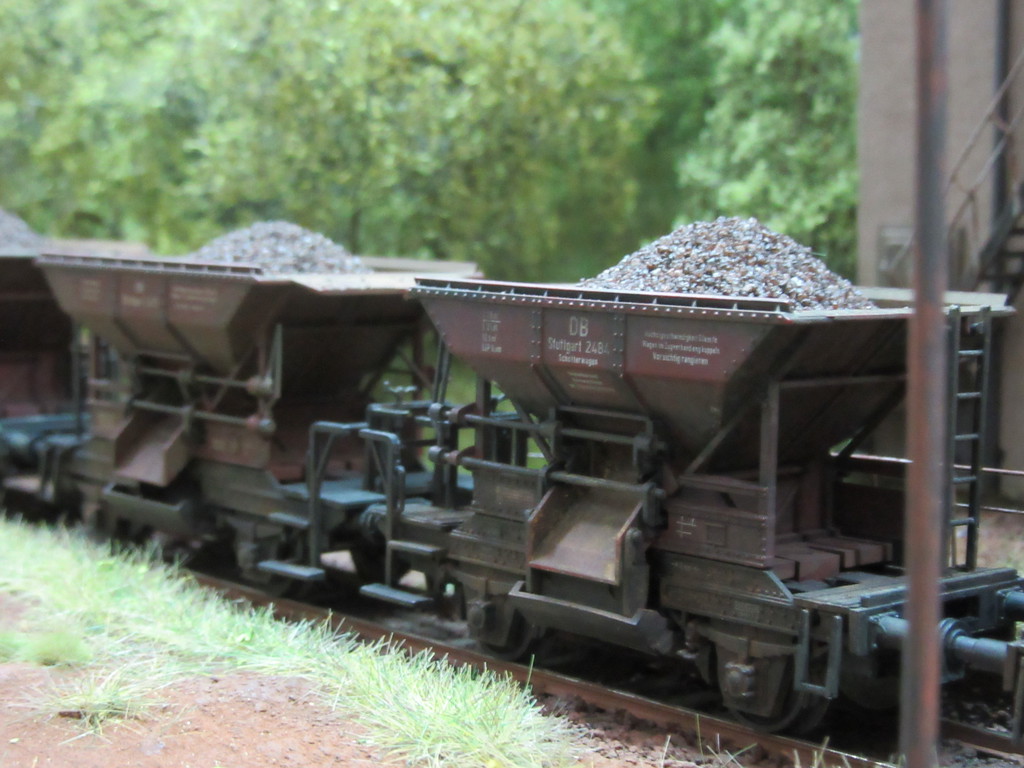 Fahrmäßiges Highlight war die Beladung mit Schotter. Deine Schütten haben mich schon immer fasziniert, und dann sehen wir sie nach "in Aktion" mit herausstürzendem Schotter! Toll fotografiert.