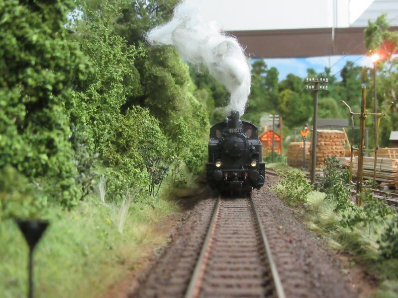 Deine 98er weiß auf jeden Fall zu gefallen! Die steht auch bei mir noch auf der "Shopping-Liste". Auch die gealterten Güterwagen sind top! Sieht bestimmt super aus, wenn der Zug in gemessenem Tempo über die Anlage rollt!