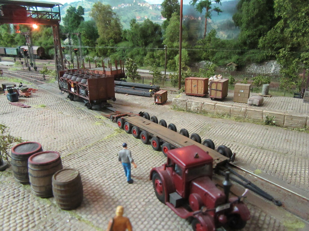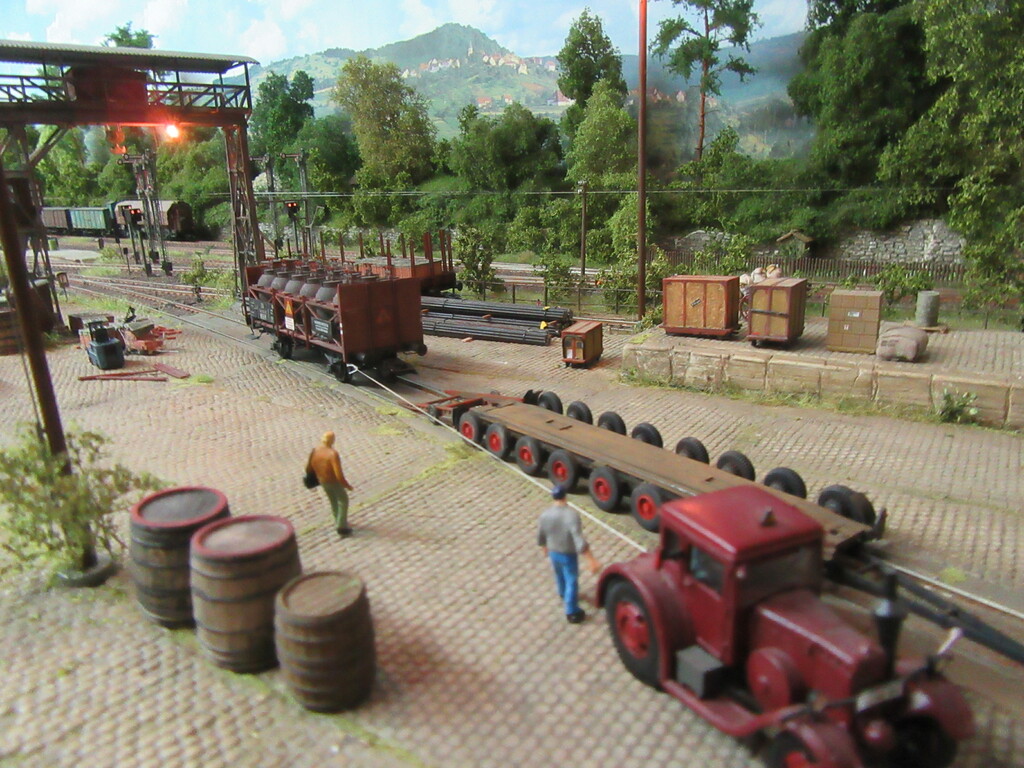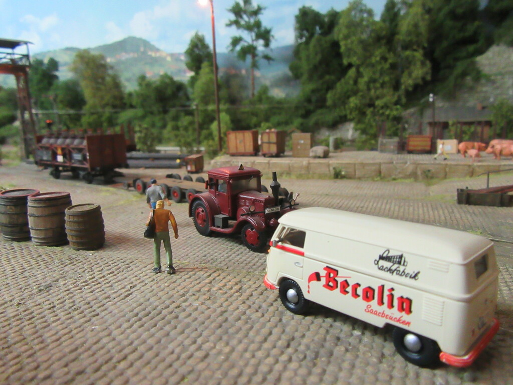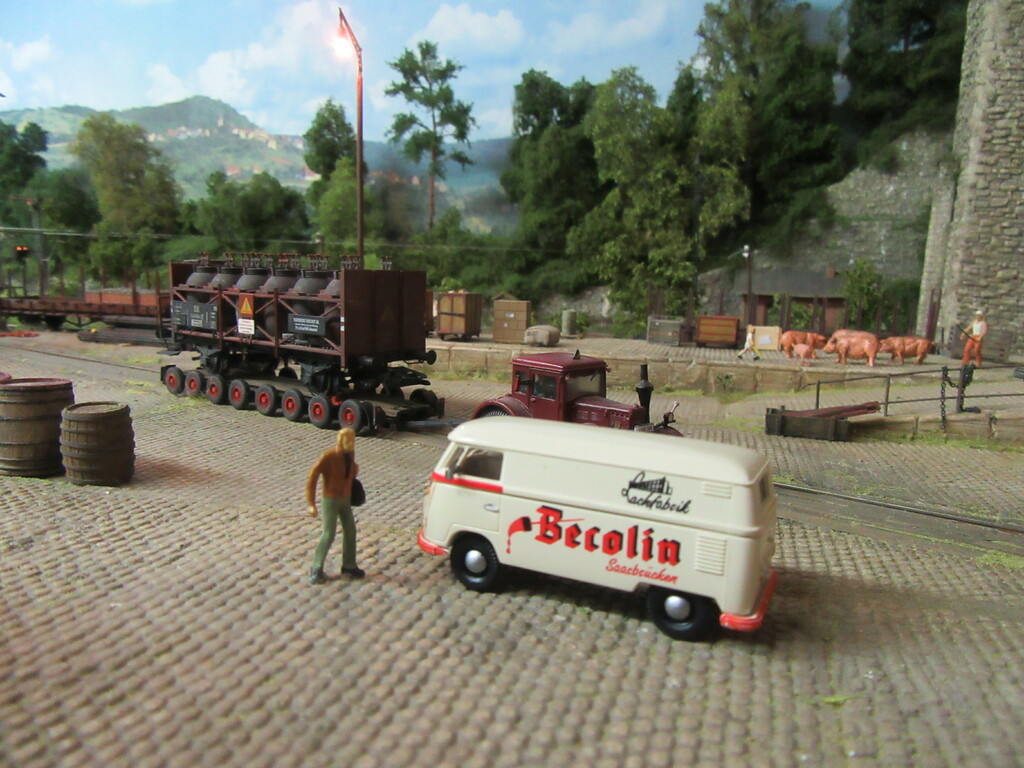Durch die letzte Geschichte zieht sich ja ein roter Faden; nämlich der, der Erlebnisse unserer beiden Rangierhelden Helmut Zirkelborn und Erhard Schwalbennest. Zusätzlich stelle ich euch so auch endlich aus ihrer Schachtel entlassene FZGe vor und ggf. deren Einsatz und Alterung. Die Anlage ist somit die Bühne für das alles.