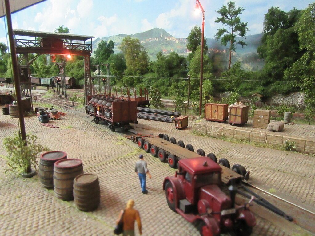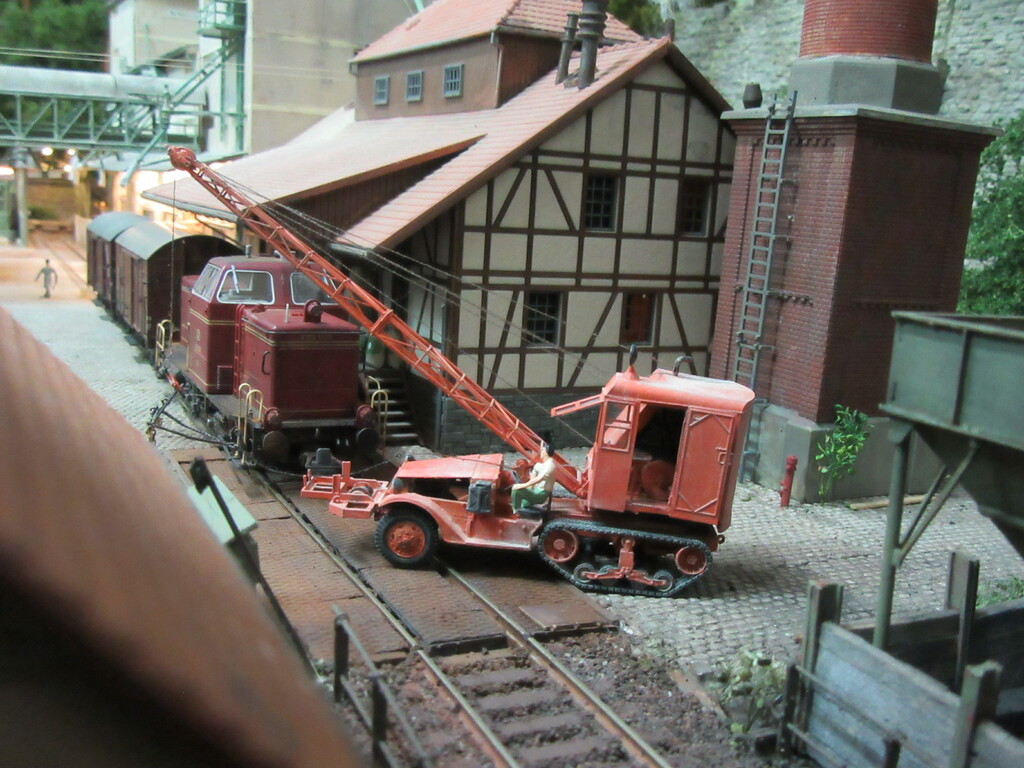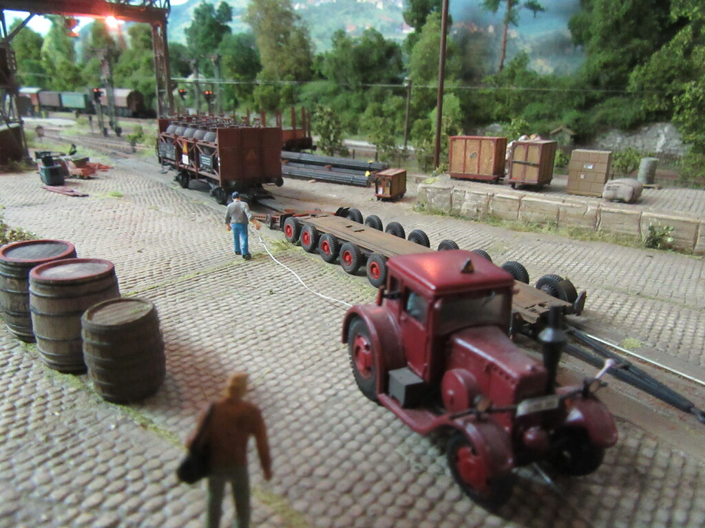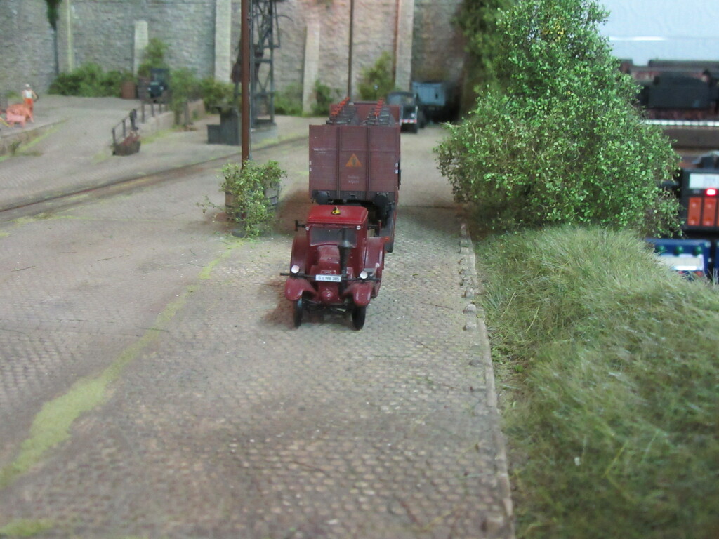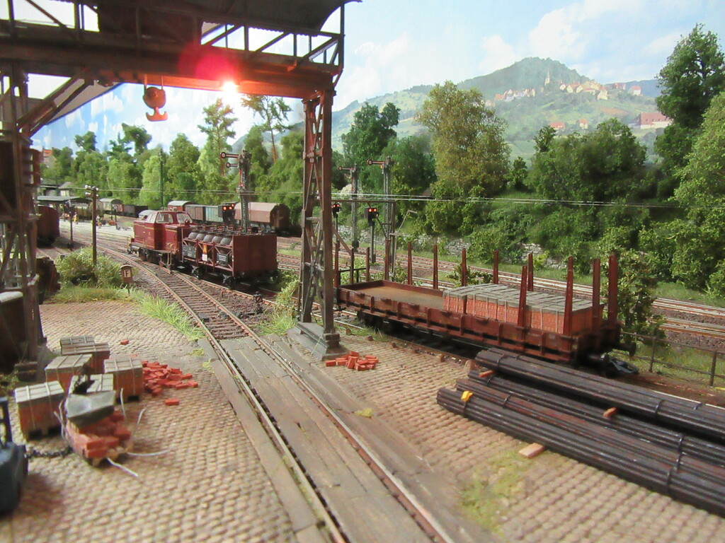 Durch die letzte Geschichte zieht sich ja ein roter Faden; nämlich der, der Erlebnisse unserer beiden Rangierhelden Helmut Zirkelborn und Erhard Schwalbennest. Zusätzlich stelle ich euch so auch endlich aus ihrer Schachtel entlassene FZGe vor und ggf. deren Einsatz und Alterung. Die Anlage ist somit die Bühne für das alles.