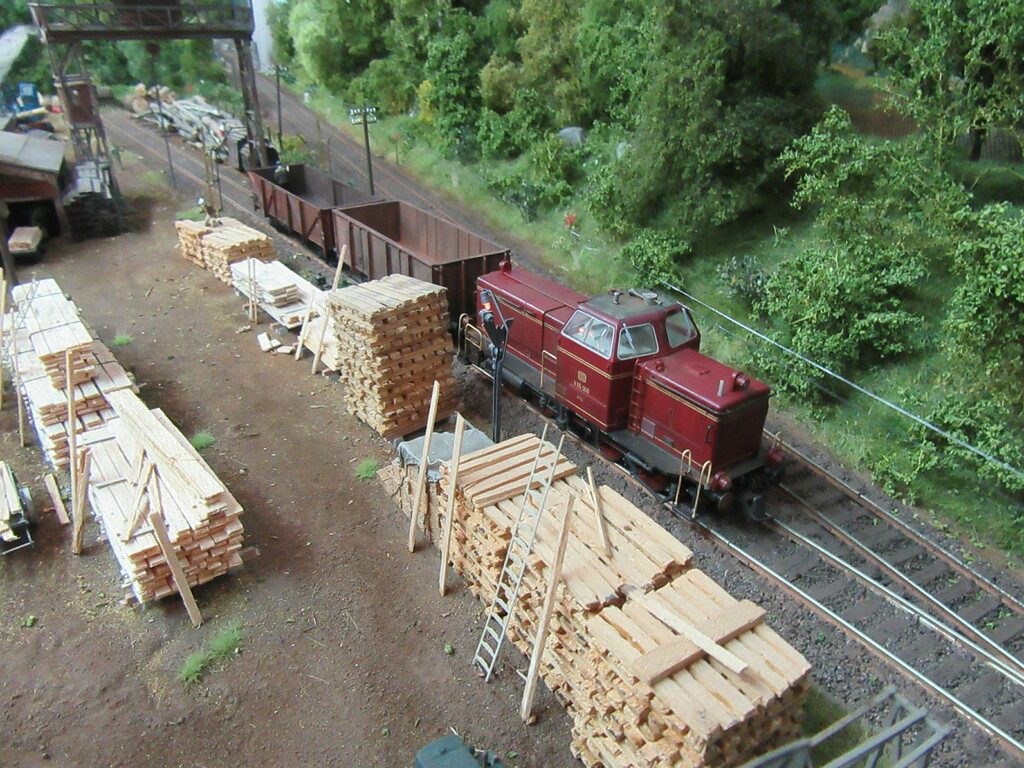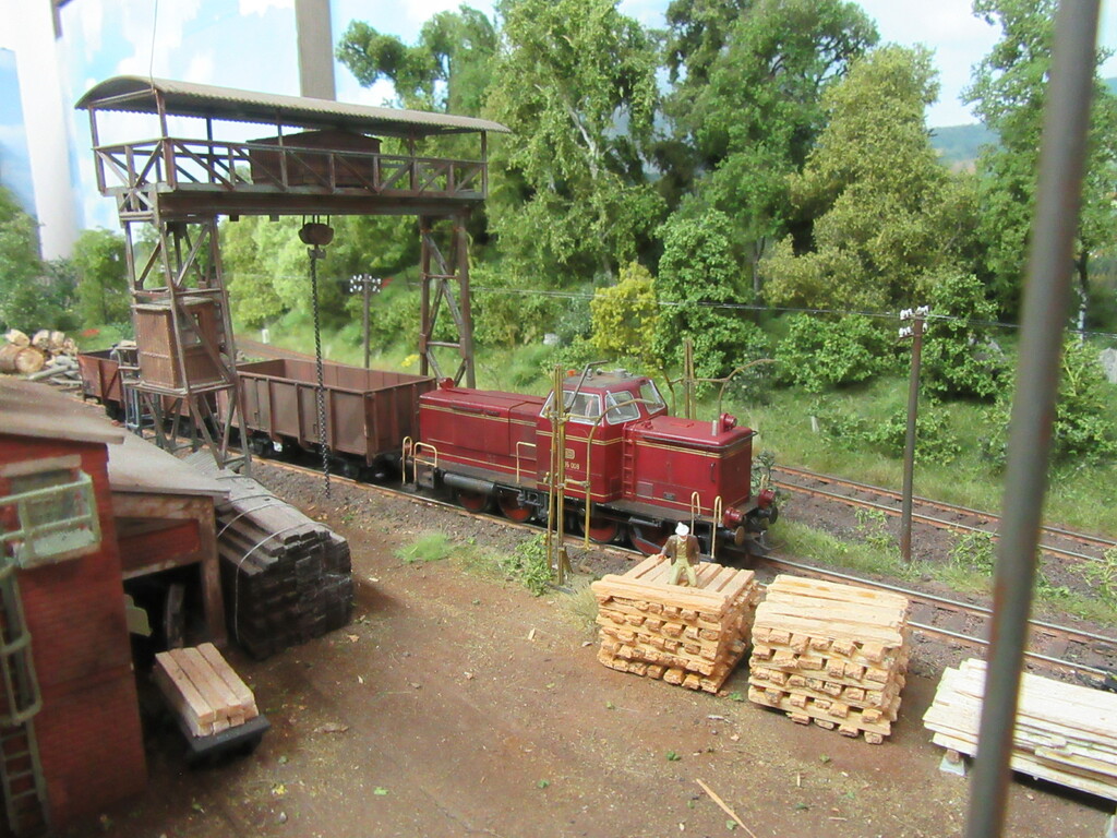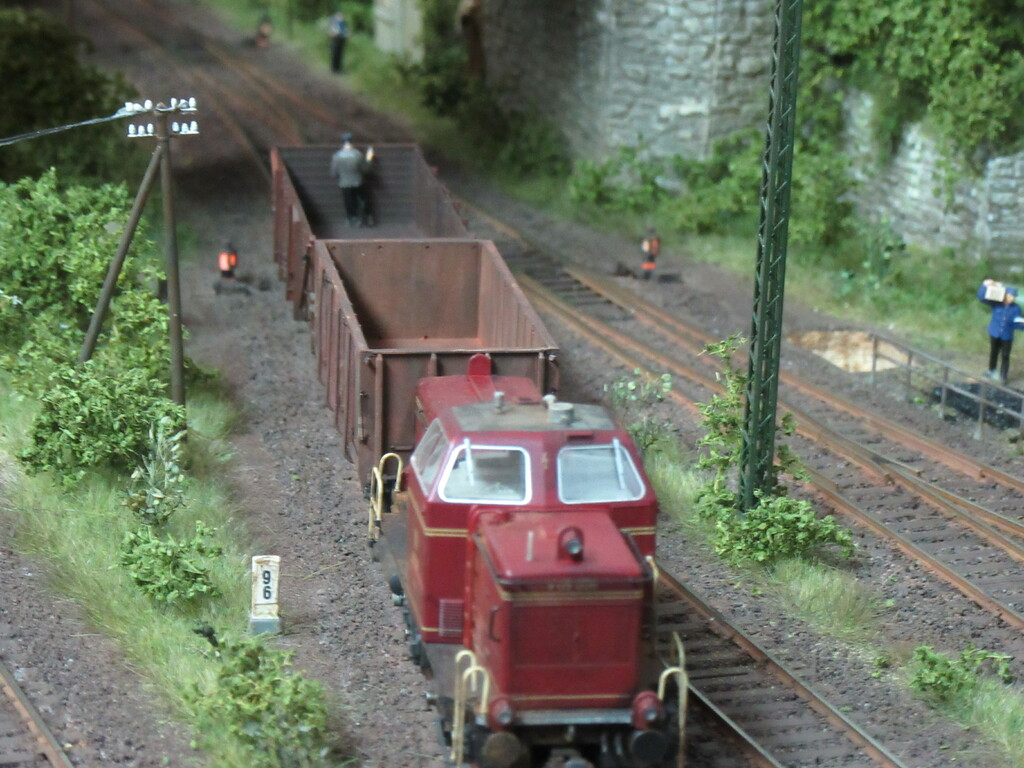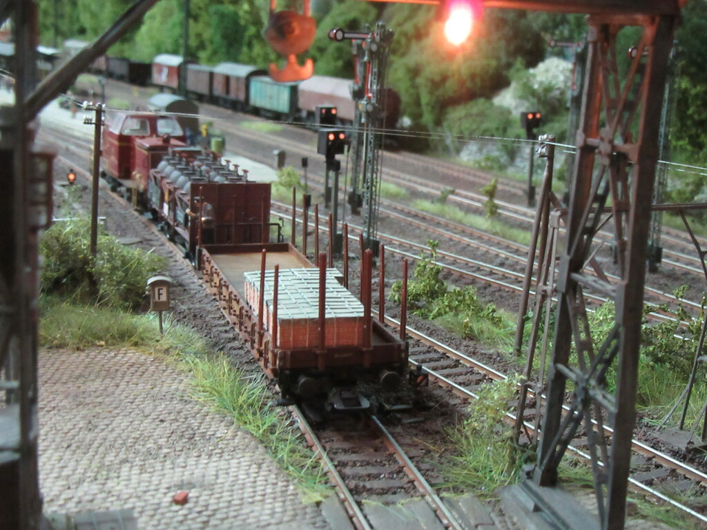 Allerdings sollte Zugführer Schwalbennest 😂 (ich wohne in der Schwalbengasse) nochmal eine Schulung für rationelles Rangieren besuchen. Ich hätte die V65 nach dem Abstellen der offenen Wagen ja wieder an den Packwagen fahren und die ganze Fuhre zurückdrücken lassen.