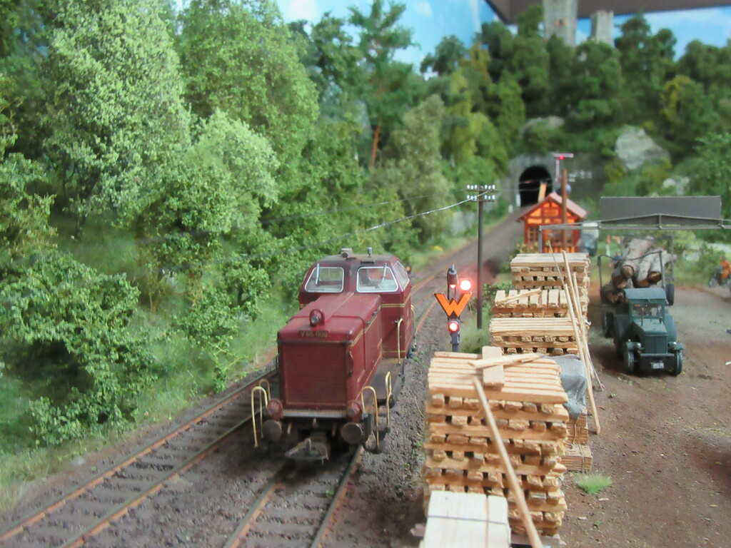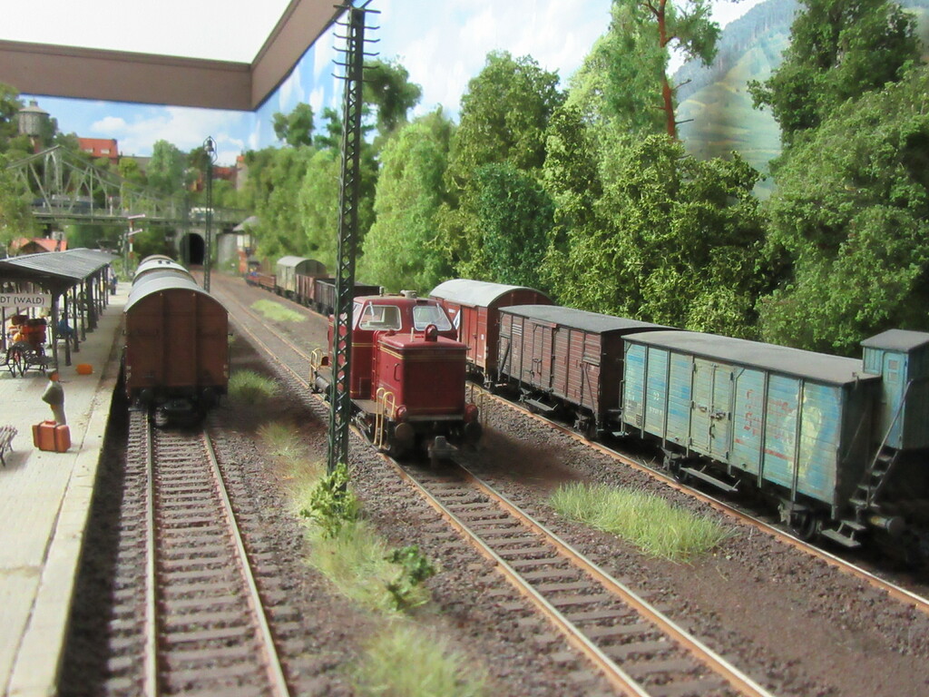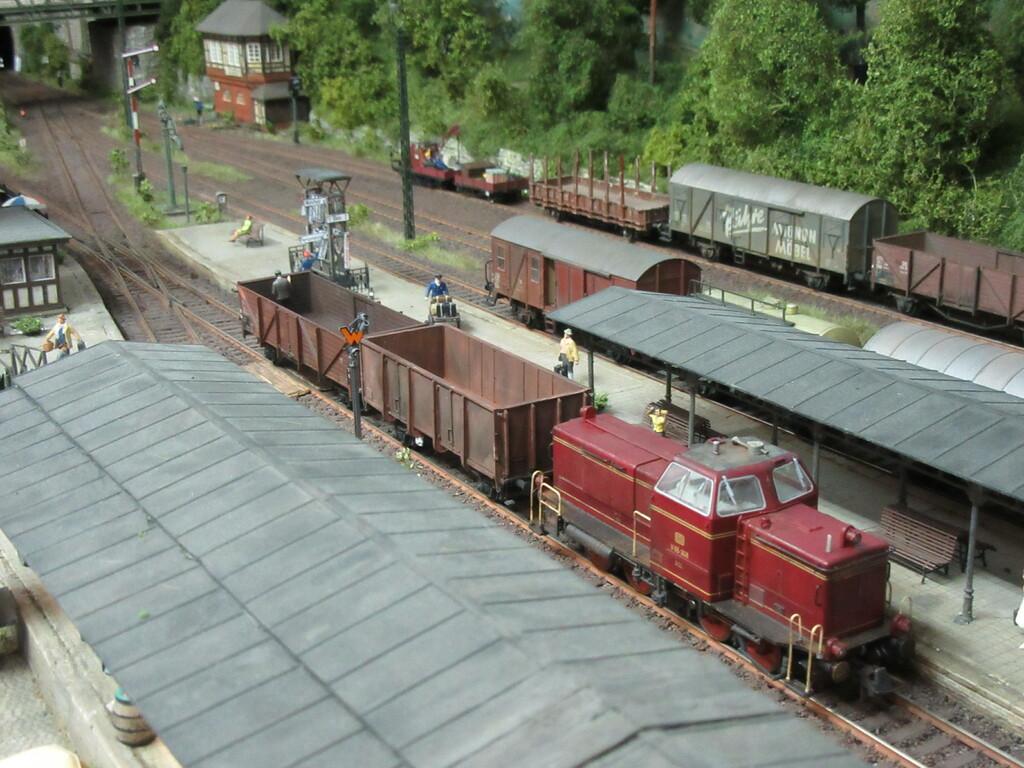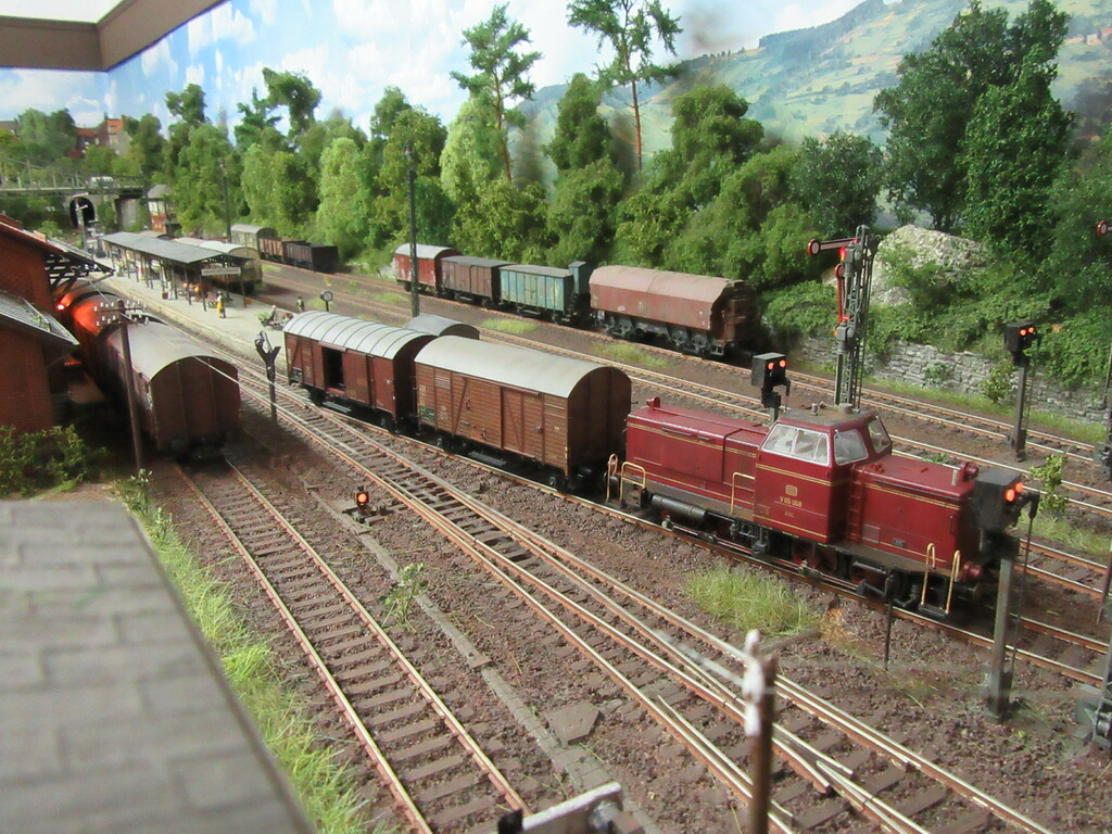Allerdings sollte Zugführer Schwalbennest 😂 (ich wohne in der Schwalbengasse) nochmal eine Schulung für rationelles Rangieren besuchen. Ich hätte die V65 nach dem Abstellen der offenen Wagen ja wieder an den Packwagen fahren und die ganze Fuhre zurückdrücken lassen.