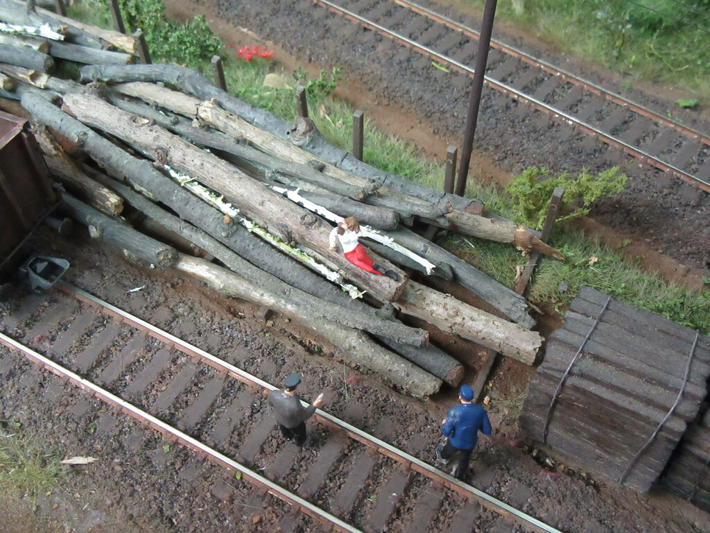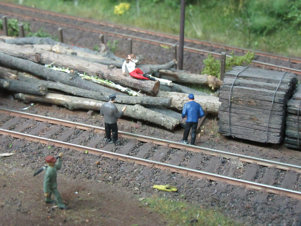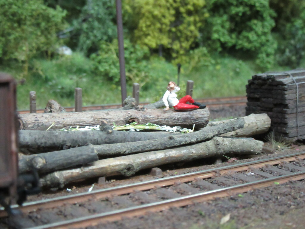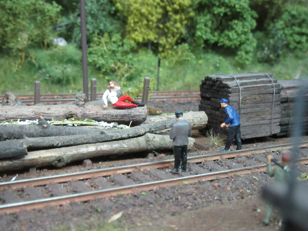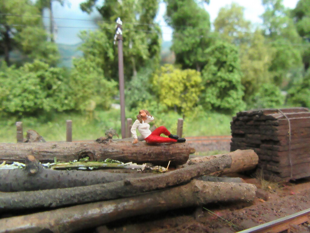Kaum sind die Wagen abgehängt und die Lok vorgefahren, schlendern die Zwei wie beiläufig in Richtung Stammlager des Sägewerkes ,wo die junge hübsche Dame es sich auf einem der dicken Bäume bequem gemacht hat und mit Ihrer Hand durchs Gesicht streicht um die dunklen Haar zu richten.