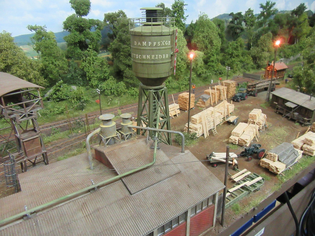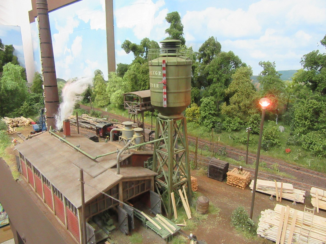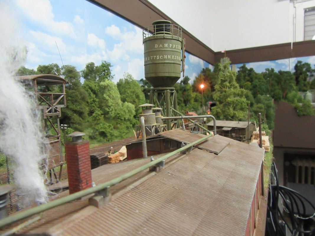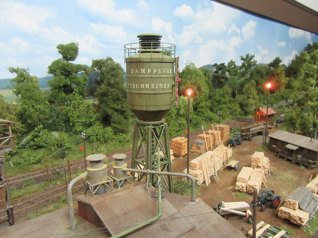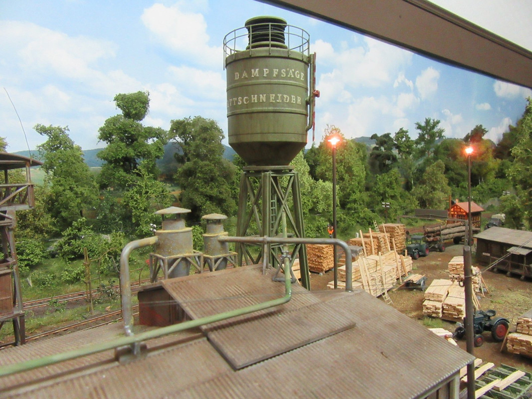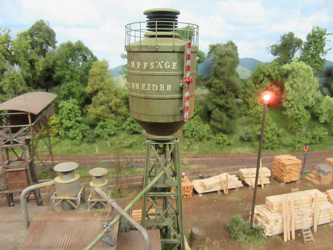 Also wuchs das Bedürfniss meinen doch ziemlich nackten Sägewerksschornstein etwas aufzupimpen und ggf. das Problem mit der Wasserversorgung durch einrichten eines Wasserturmes als Speicher zu lösen.So sieht das Sägewerk ja bis dato aus..
