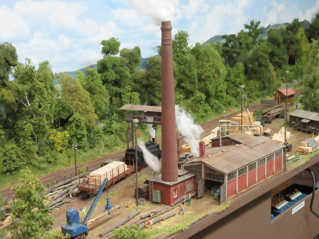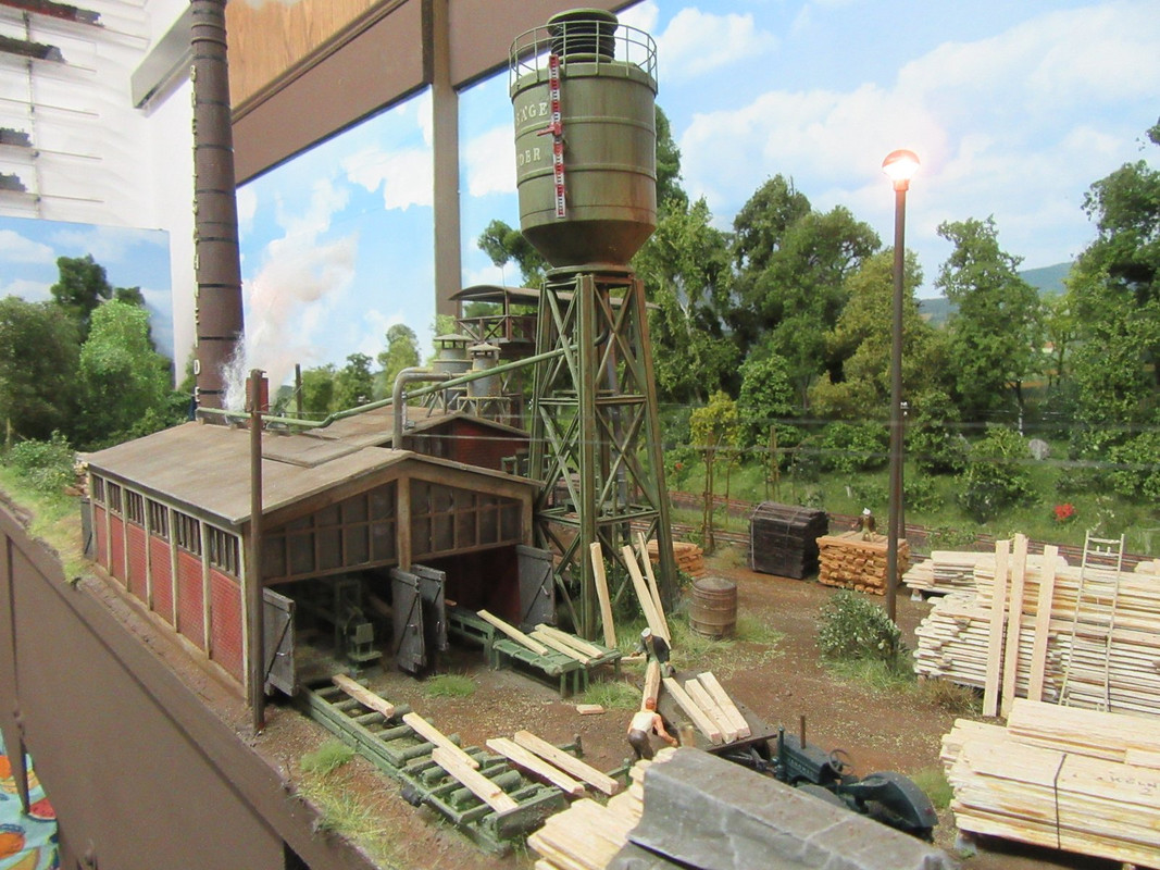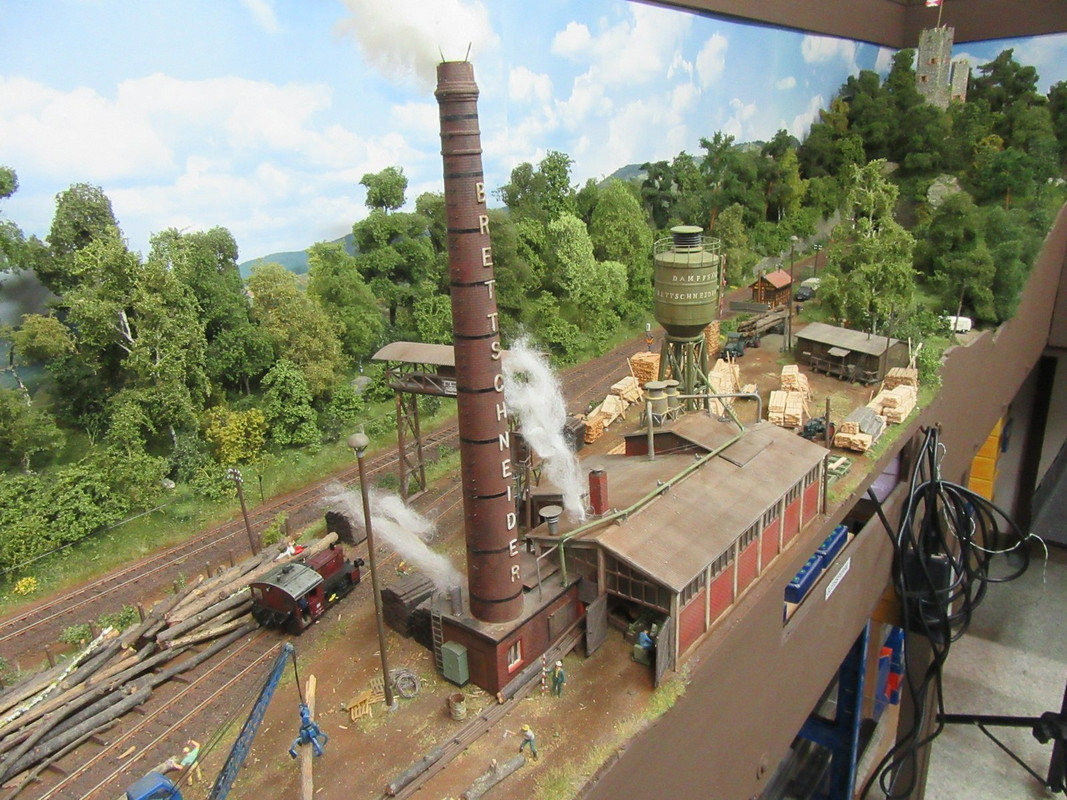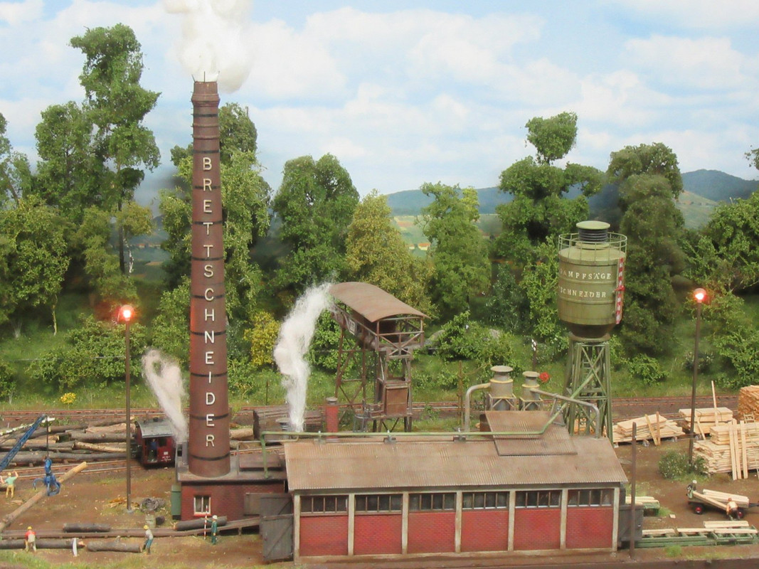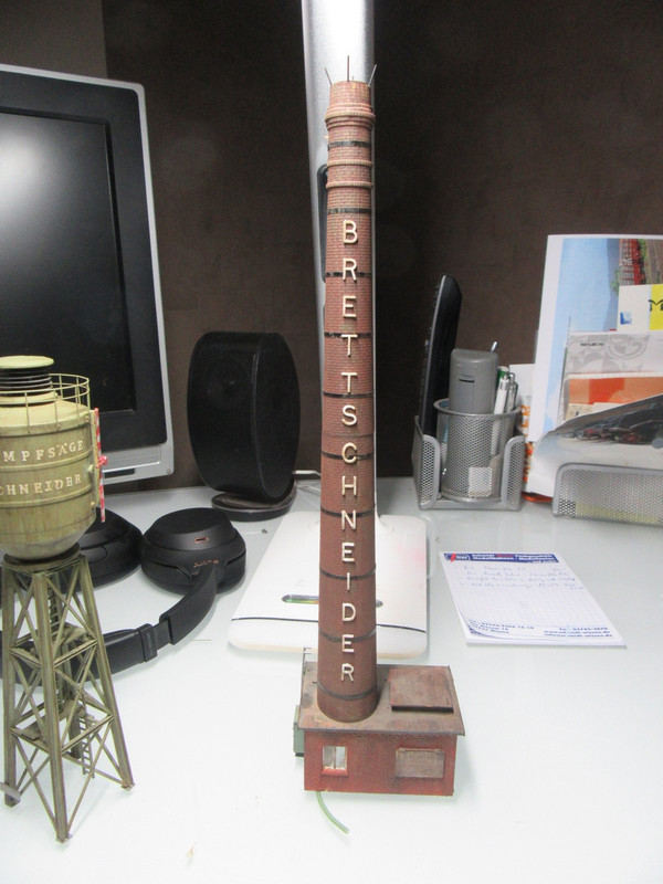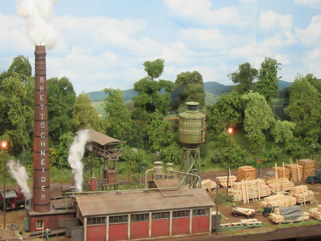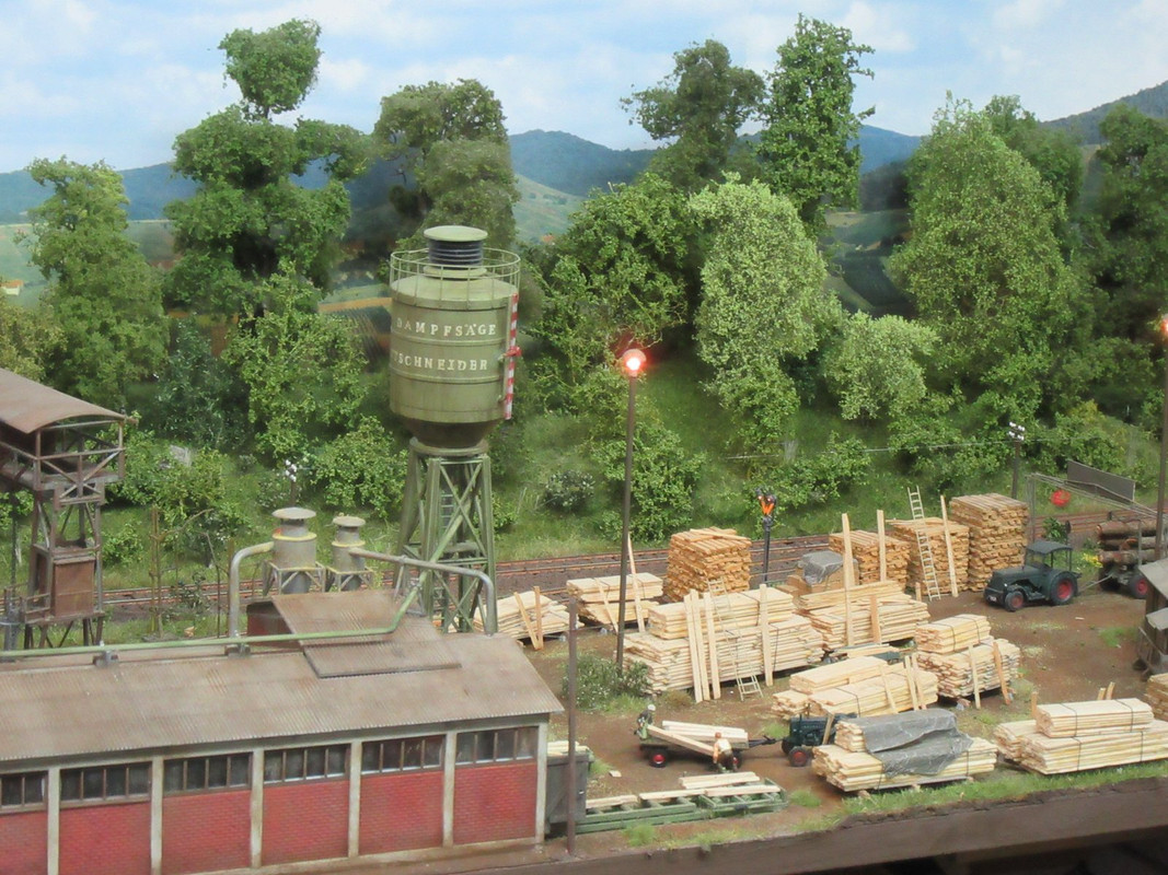 Also wuchs das Bedürfniss meinen doch ziemlich nackten Sägewerksschornstein etwas aufzupimpen und ggf. das Problem mit der Wasserversorgung durch einrichten eines Wasserturmes als Speicher zu lösen.So sieht das Sägewerk ja bis dato aus..