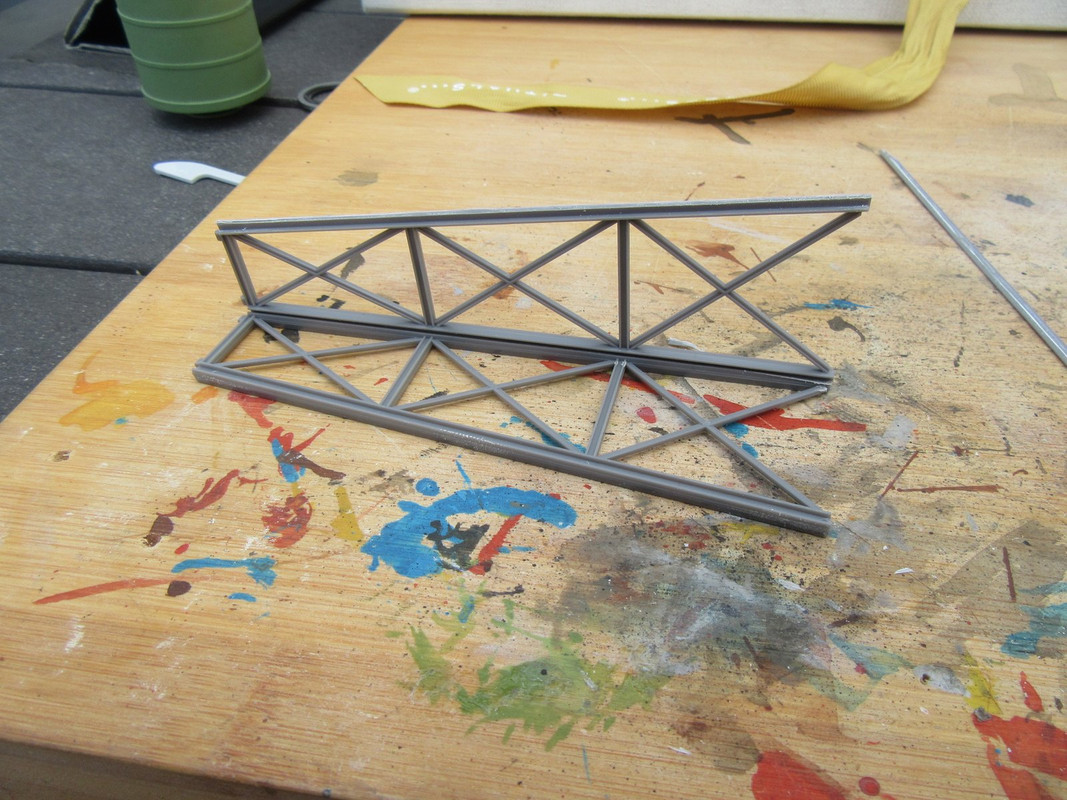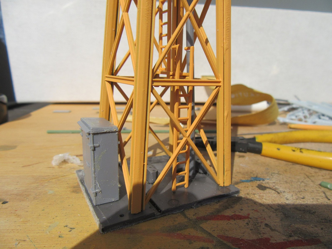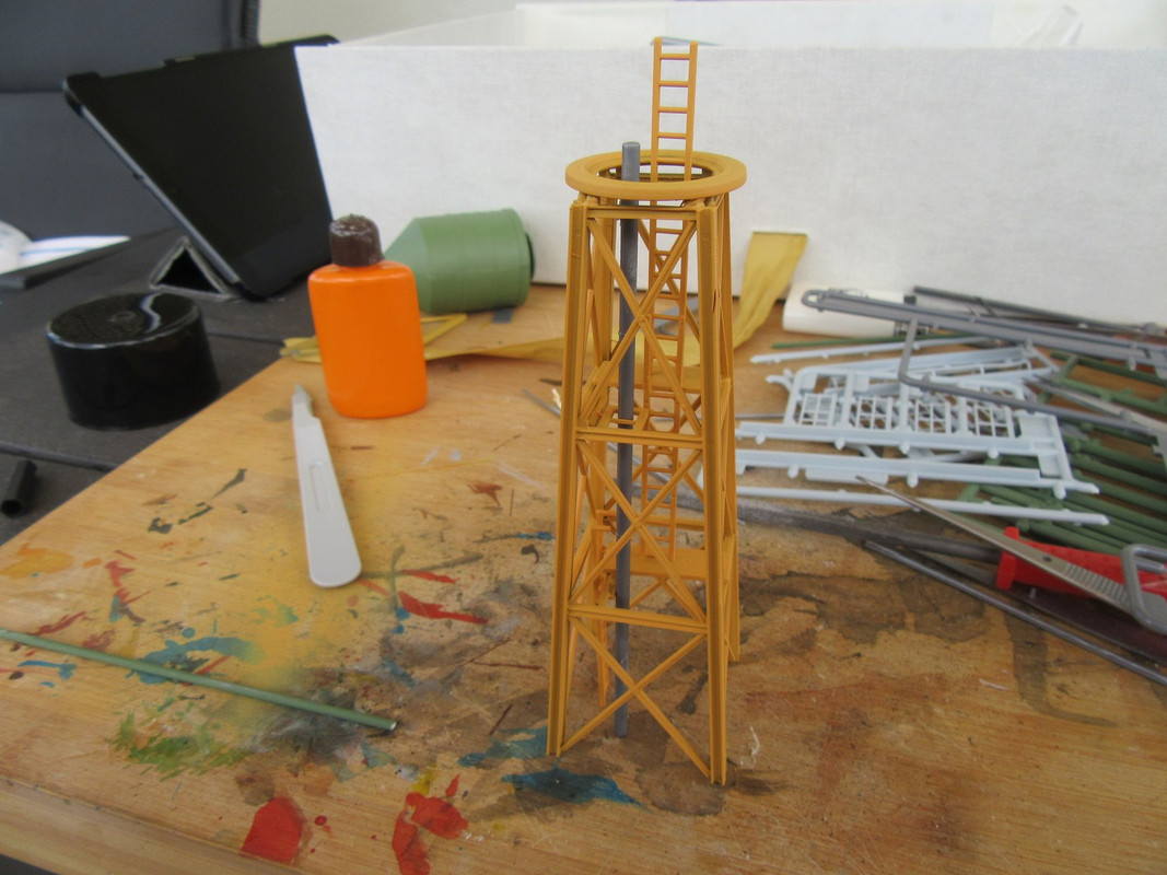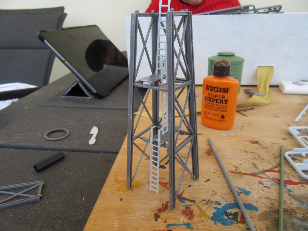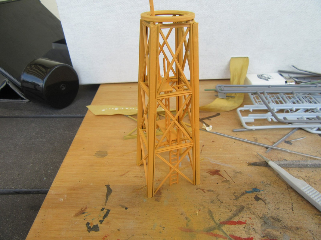 Aus den Standfüßen der Faller Förderbänder entstand der schmale Turm für einen Wasserbehälter.