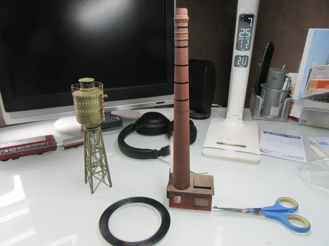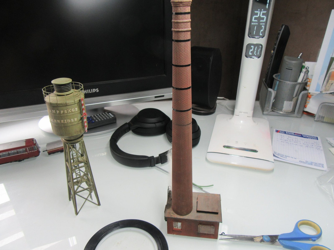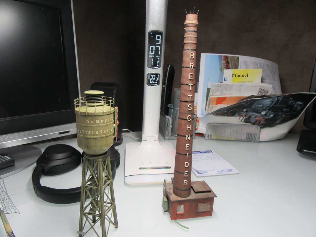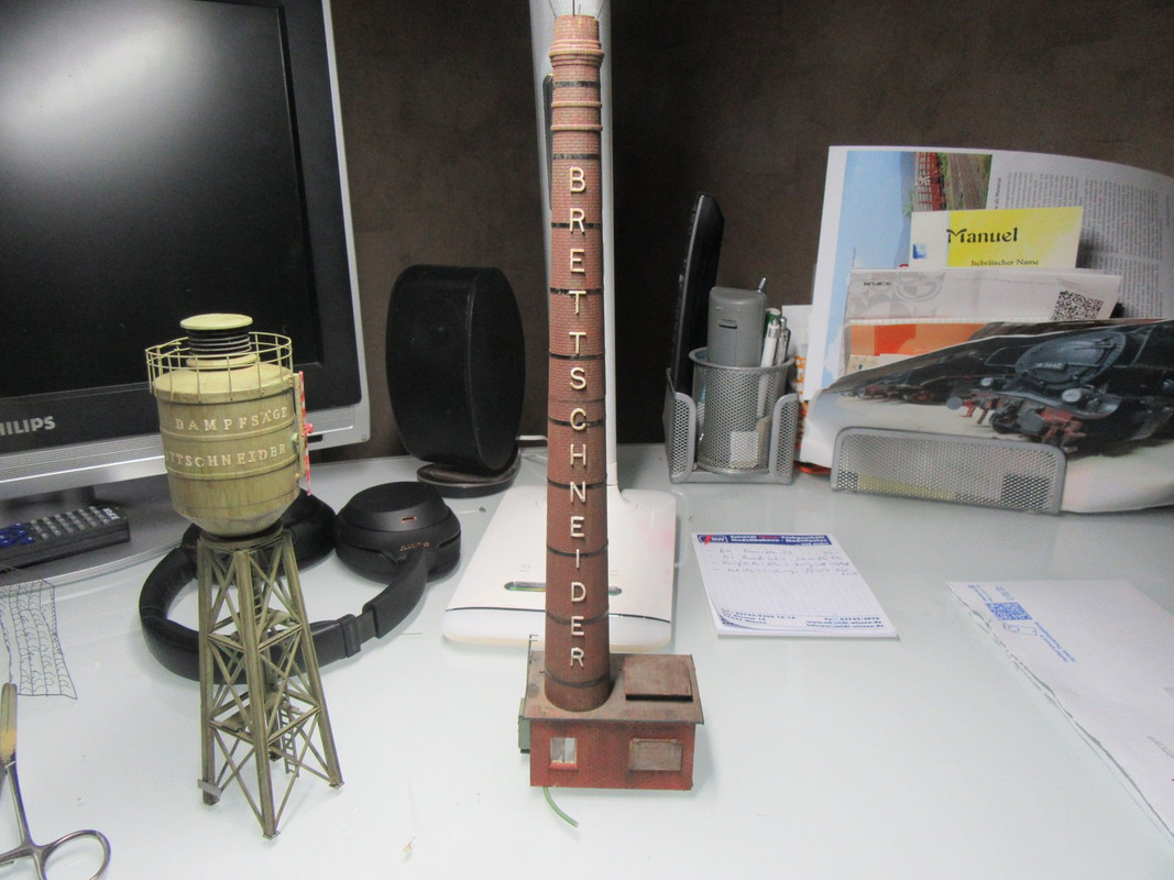 Nach Studium des Buches war ich erneut „angefixt“ von dem feinen Wasserturm und dem detaillierten Fabrikschornstein den le Plat schuf.
