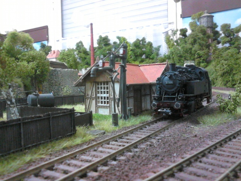 Gleisseitig verfügt die Bahndienststelle auch über einen Wasserkran für die Rangiermaschine. Der kleine Dienstkohlenbansen ist jedoch nur für die Gebäudebeheizung und den Wasserkranofen gedacht.Man hat jedoch auch schon Heizer mit Eimern zur Lok laufen sehen... (Brücke hier zum basteln abgenommen) Die schwere 81er ist oft zum Rangierdienst in Neustadt eingeteilt und pausiert gerade am Wasserkran In den nächsten Tagen erfolgt die weitere Ausgestaltung mit Pflanzen,Tieren ,Figuren,Werkzeugen,Fässern usw. und Laternen .Wollte trotzdem den Stand der Arbeiten für Euch dokumentieren ,werte Stummikollegen und sage Grüße und bis später...Willi...Der Dampfer 8)