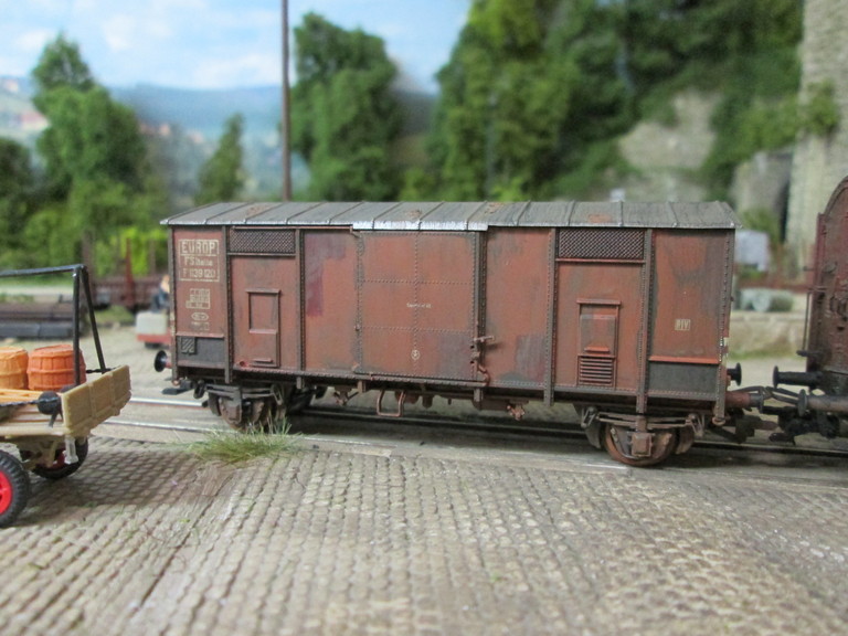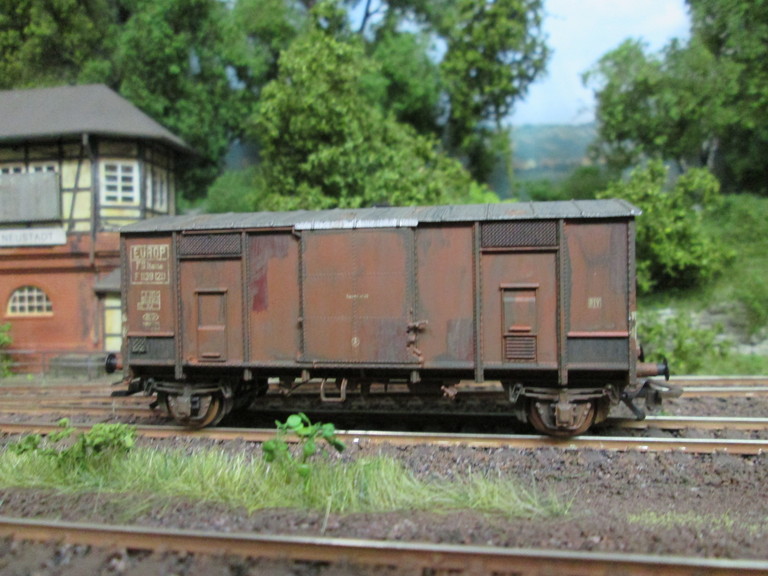 Hallo Stummis Neues aus Neustadt Möchte Euch eine Sonntagsmorgens- Bastelei zeigen. Bin heute morgen......(sorry) Habe heute morgen wieder ein wenig gealtert. Ein italienischer F Metallspitzdachwagen ist mir unter die Finger geraten. Nachdem ich mit ihm fertig war,sah er ganz schön alt aus Guckst Du hier: