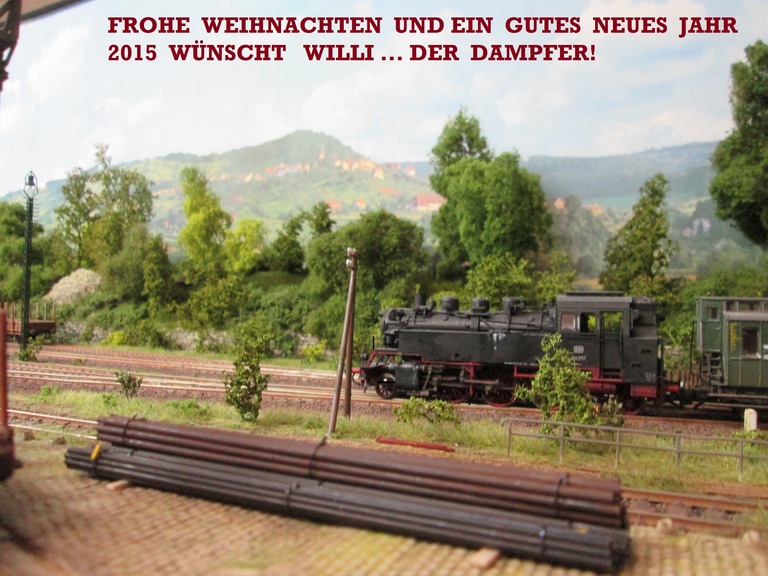 Hallo Alexander und herzlich willkommen im Neustadt Trööt. Vielen Dank für Dein Lob und Deine guten Weihnachtswünsche , die ich gerne an Dich und alle die Dir wichtig sind ebenfalls entrichten möchte. Dein Wendelbaum sieht ja sehr weihnachtlich aus.... wegen dem Kurzschluß laß Dir keine grauen Haare wachsen. Der Reihe nach Stücke abschalten und schauen wo sich der "Futzsack"(niederrheinisch für Kurzschluß)versteckt hat. Oder Du schreibst gleich Randolf unserem E-Pabst hier im Forum. Schaue später noch bei Dir im Trööt vorbei.....Grüße und gerne bis später sagt Willi...Der Dampfer
