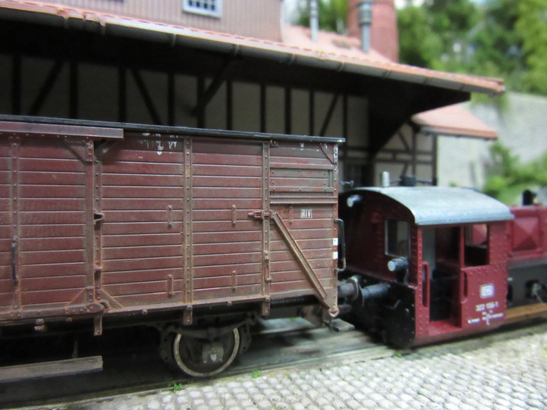 Edit: Ich sehe gerade, dass die Köf doch schon ein bisschen bearbeitet wurde, aber im Vergleich zu den Waggons immer noch ein bisschen zu sauber.