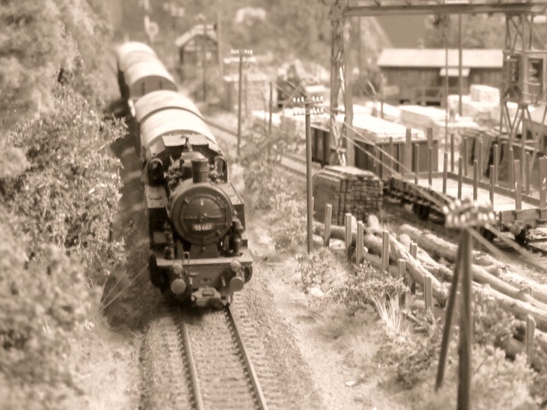 Das Betrachten deiner Bilderflut hat jetzt eine ganze Weile gedauert - aber es hat sich Gelohnt. Deine Arbeiten gefallen mir sehr gut. Deine Anlage gibt die 50iger Jahre mit dem Teilweise abgewirtschafteten Rollmaterial sehr gut wieder. Da passen deine "gealterten" wagen sehr gut zu. Das Bild von wo aus man einen Überblick über deine ganzen Gleise hat...man könnte meinen das ist in den Fünfzigern irgendwo auf einem Bahnhof augenommen worden. Auch der alten Donnerbüchse sieht man ihre Jahrelange Einsatzzeit an. Ich vermute mal sie wird demnächst durch die Umbauwagen ersetzt, die ja zu der Zeit vermehrt in den Betrieb gingen...